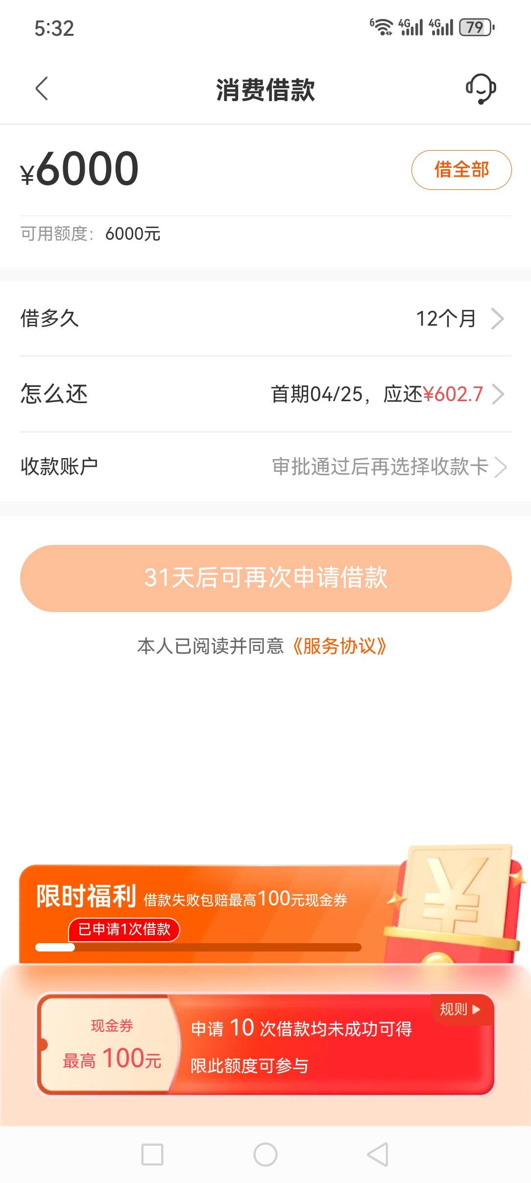 给了6000额度,申请秒拒