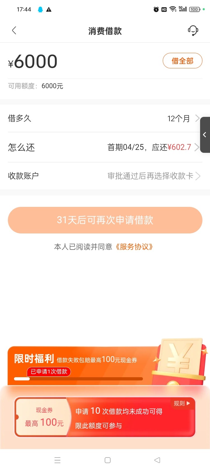 下个毛啊根本不给额度让31天后再申请