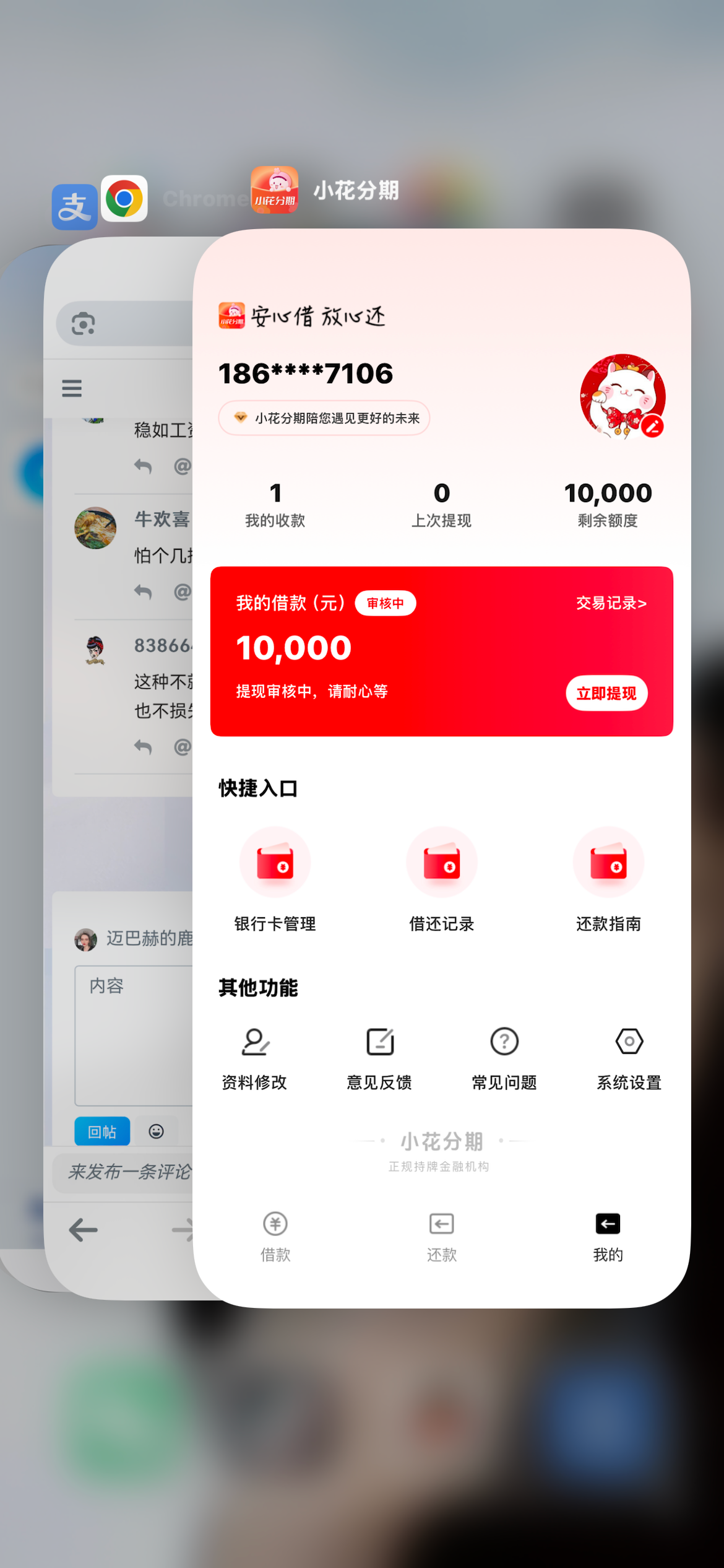 我征信不好也下了,昨天申请,今天就下了。口子呀。