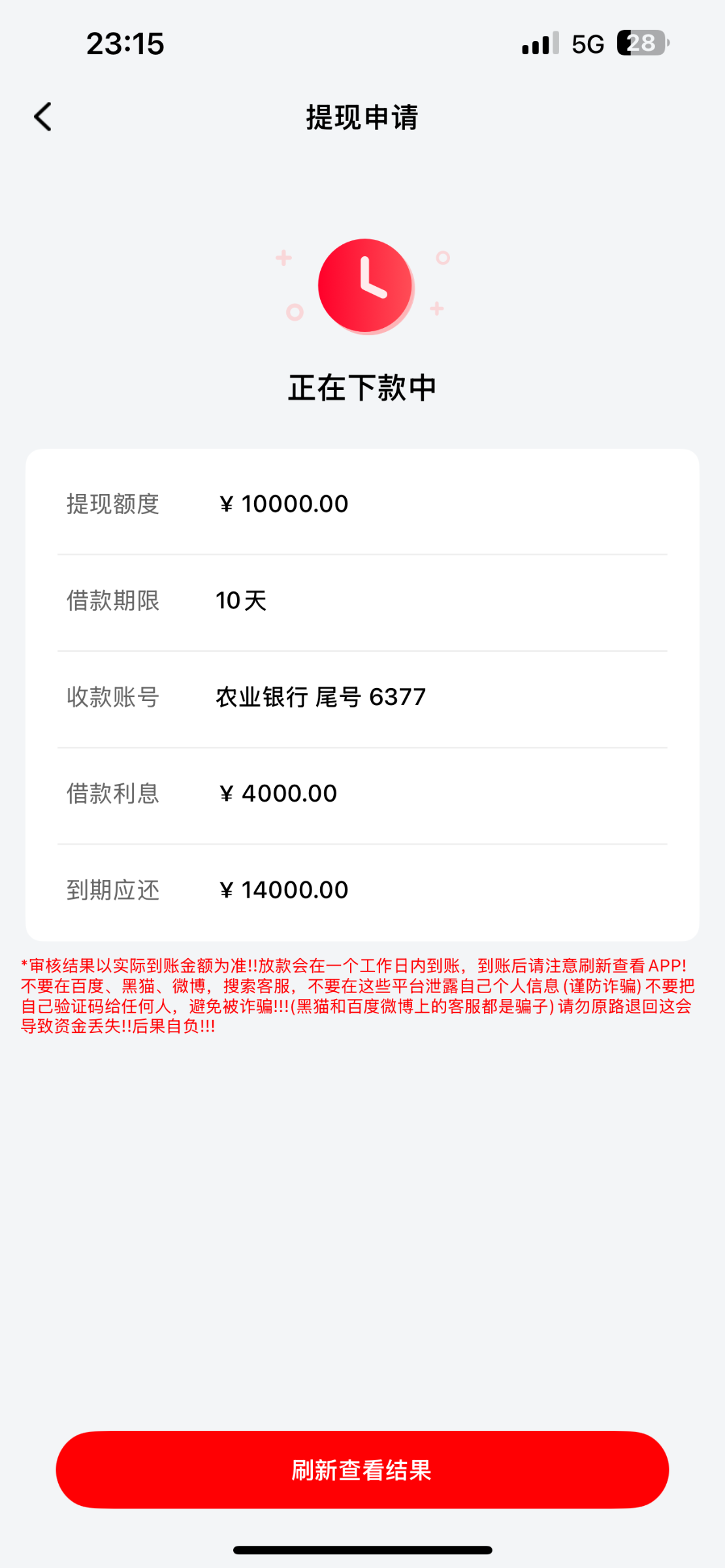 11点申请,4点到账的