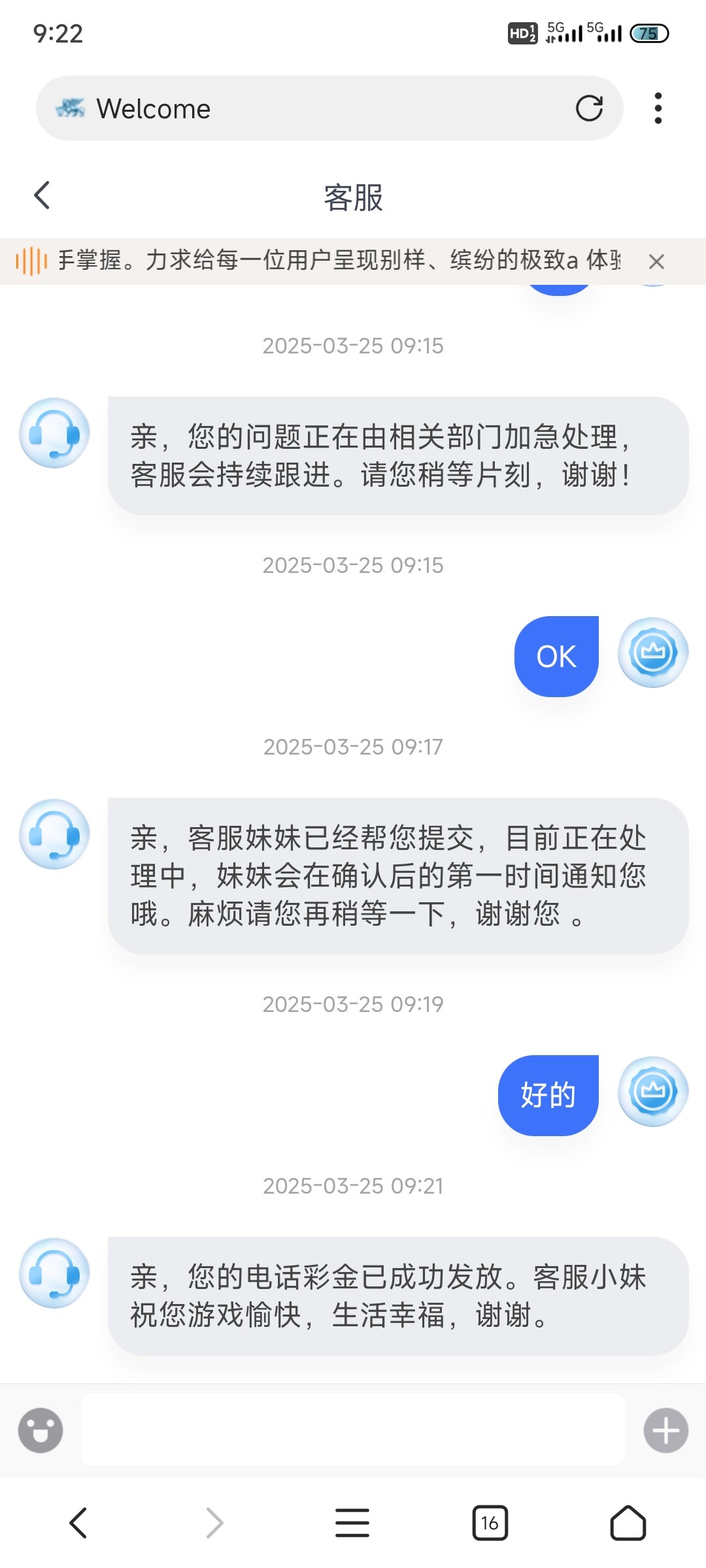 垃圾玩意,问了几个月问就是我司没有电话彩金,他妈的充值过的不送,不充值的一直送