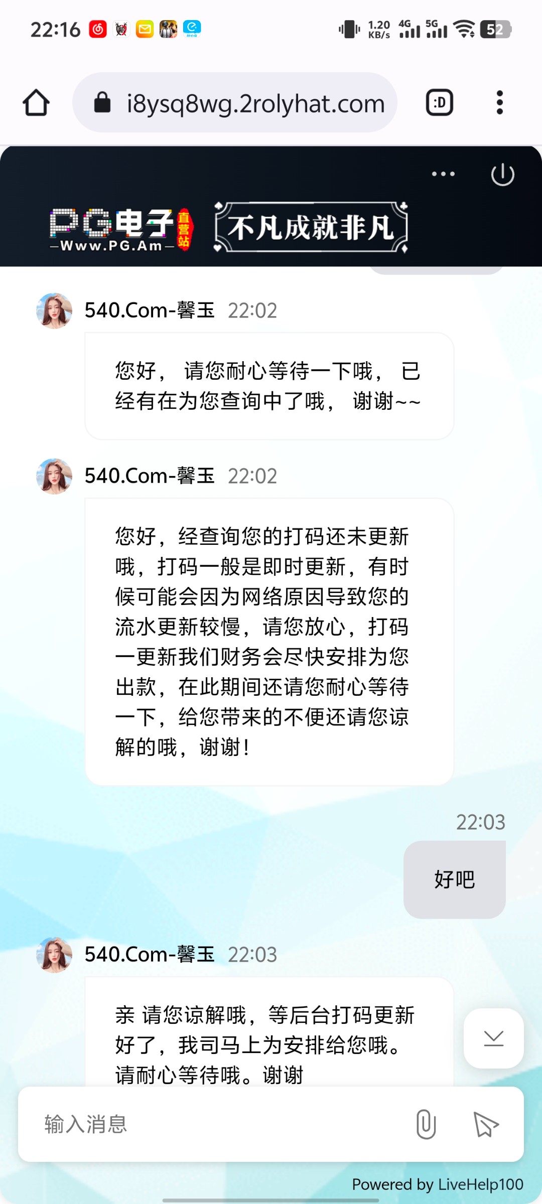 碰到了下100,客服直接说注单未更新直接黑了