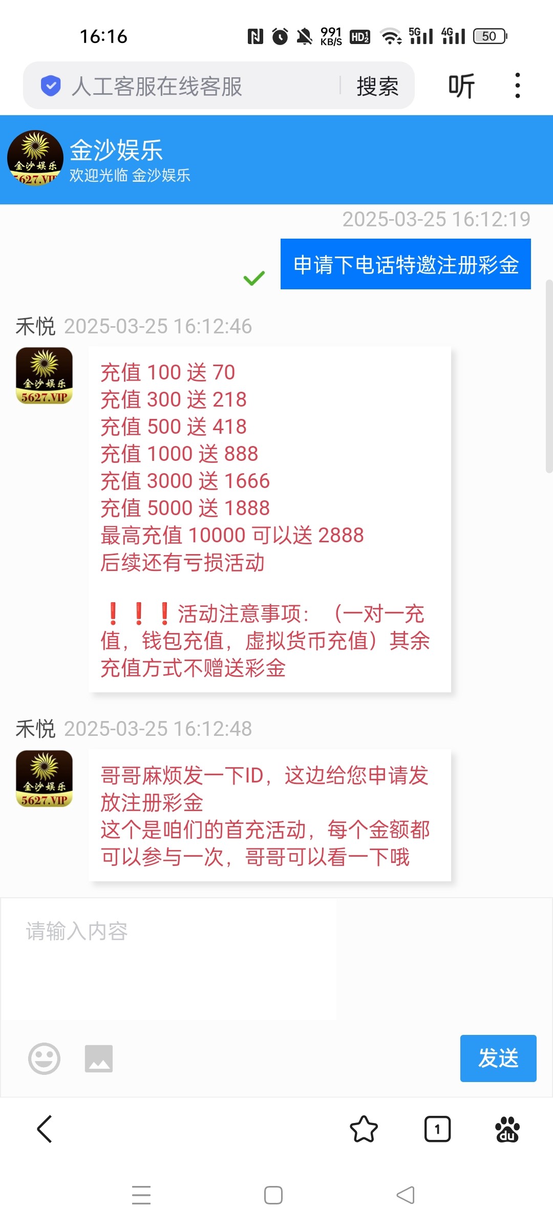这垃圾台就不送,忽悠注册了然后忽悠充值100送100。充值了就是送18,剩余的打够流水才送,总之就是套路充值