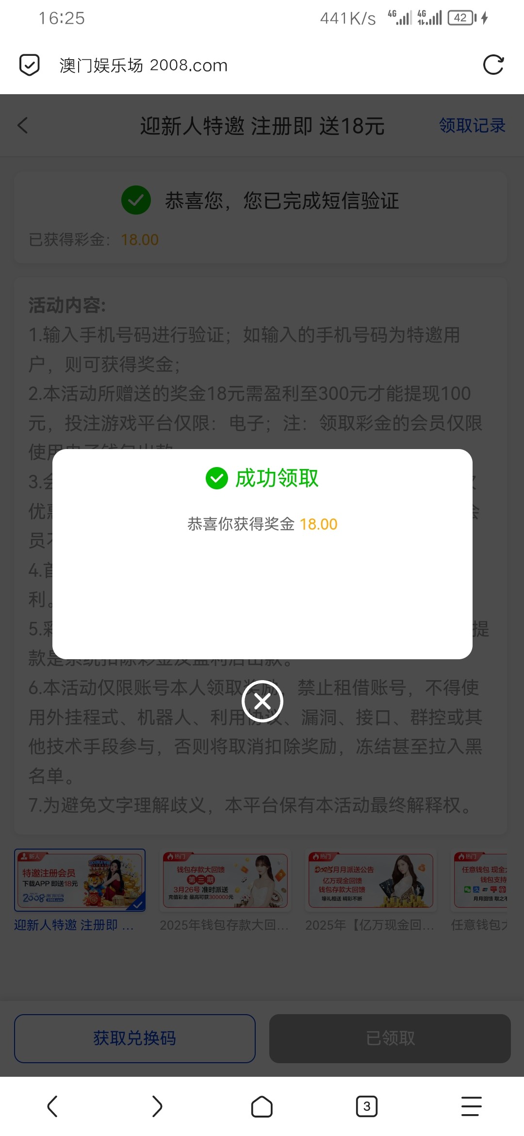 唧唧人刚刚打电话送彩金上去注册了绑定了自助页面领取到的 可以去碰瓷一下下 地址 2008.com