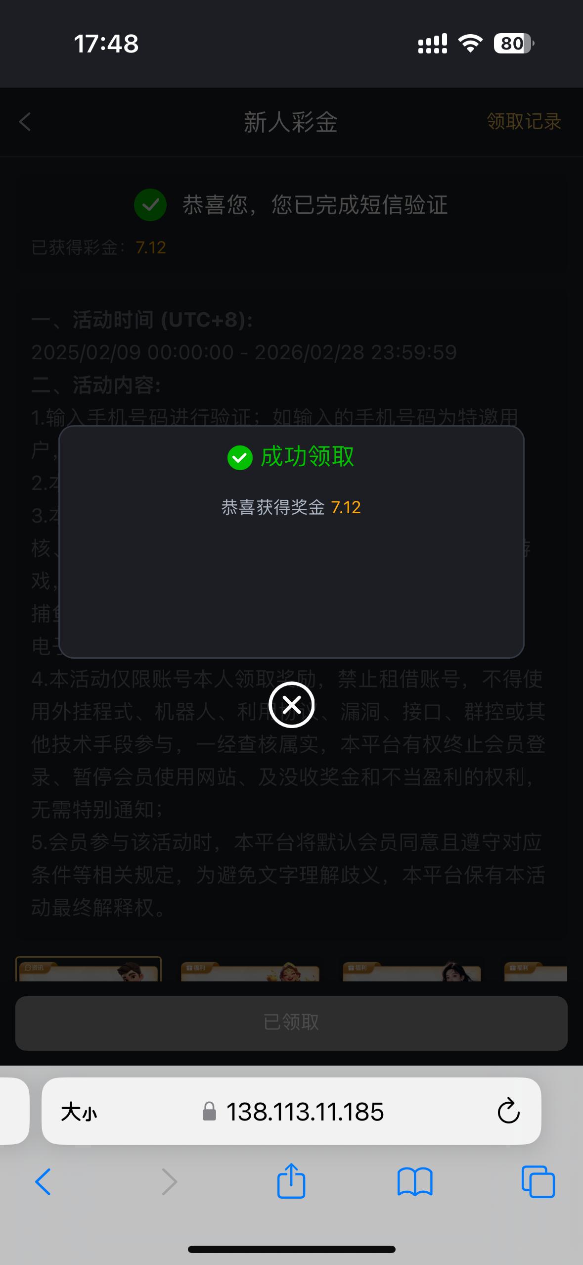 刚收到的短信,点击优惠—新人里面的自助,可以去碰碰。712.com