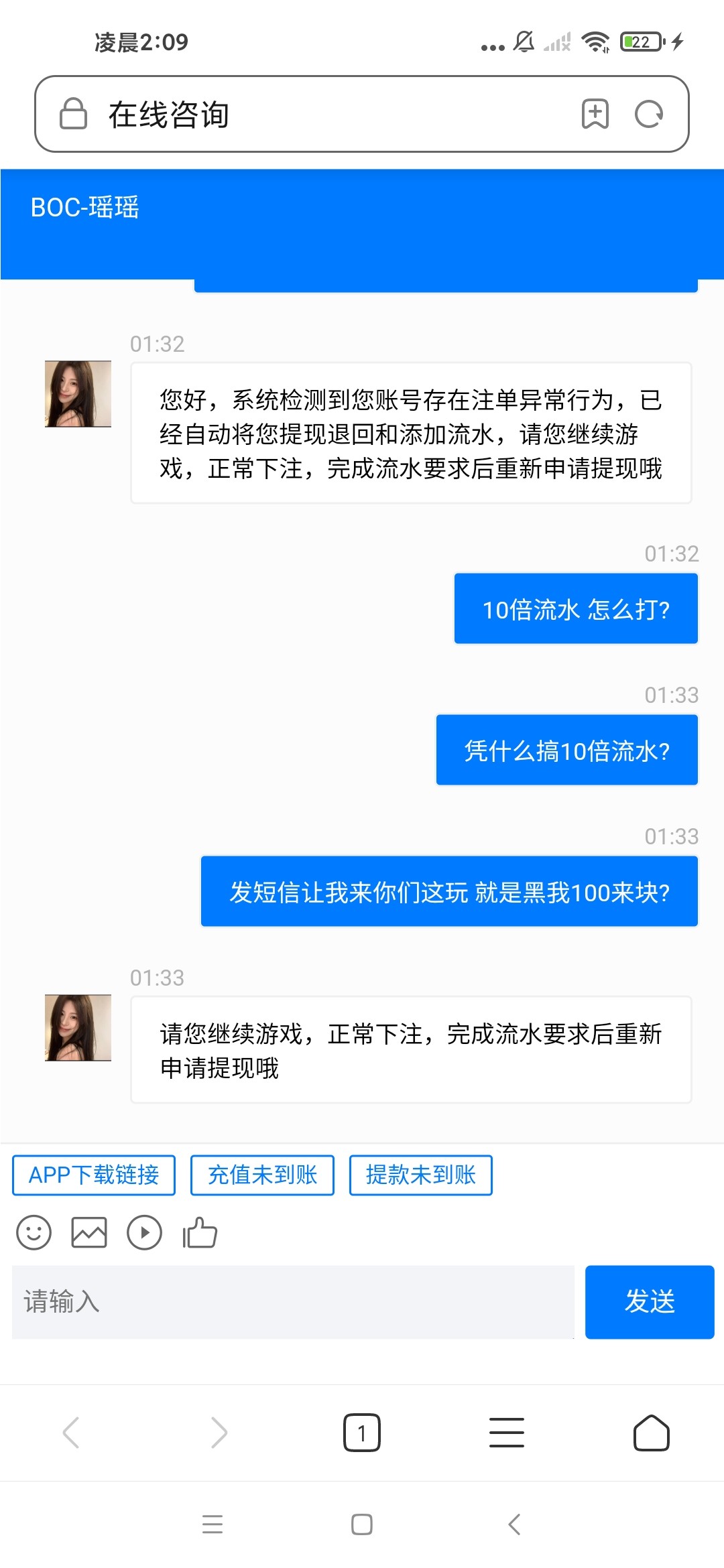 昨天收到这短信还想去上100试试水,后面在其它台洗白了