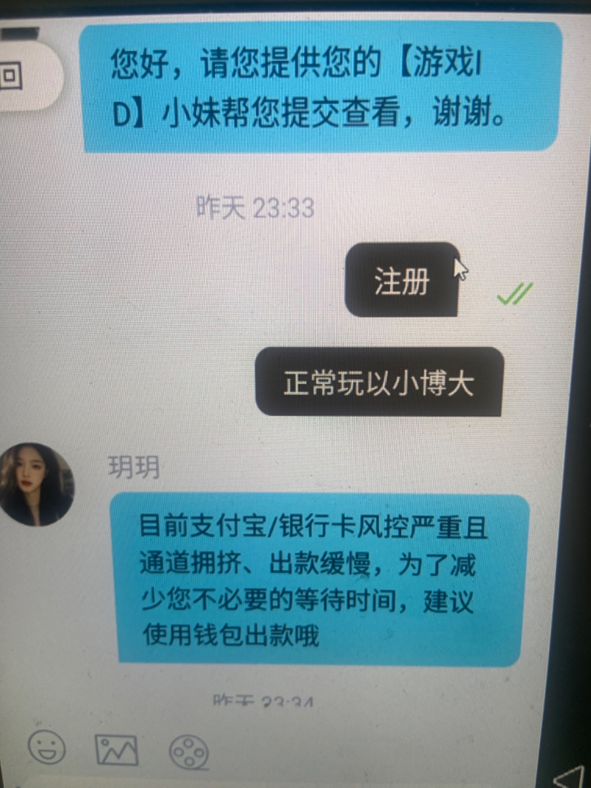 昨晚没事干打了皇冠100➕50以小博大玩LG电子上了1000后提u 因为我上也是用u上的分 一开始跟我说维护 后面又说是要手持然后叫我出钱包或者支付宝 出支付宝他显示说我账号不对一直卡到后面装都不装了直接说我对打 老哥们小心了