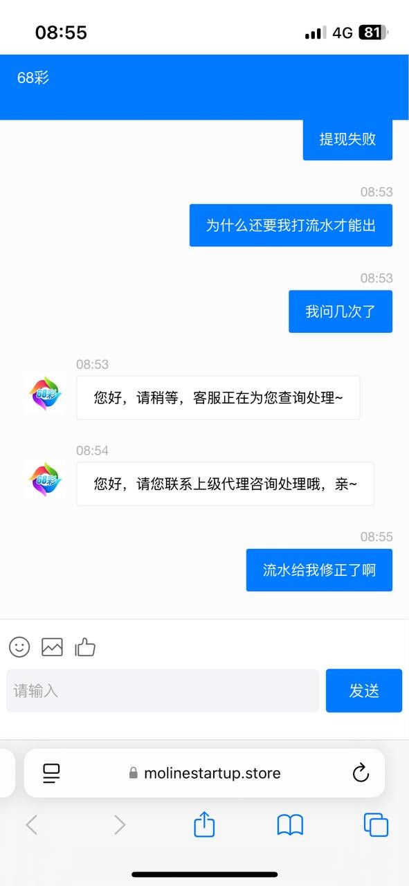 虽然不是自己的号,代飞机上老哥曝光一下,充值1.4k提款3.7k被罚10倍流水一直打到上1.5w左右,提款就马上被回充重新打一直重复流水累计12w左右,联系上级说维护等白天再处理,今天就把所有联系方式封禁IP设备全封禁。万把块都黑的垃圾平台各位老哥记得避雷。显示提款成功的都是被回充