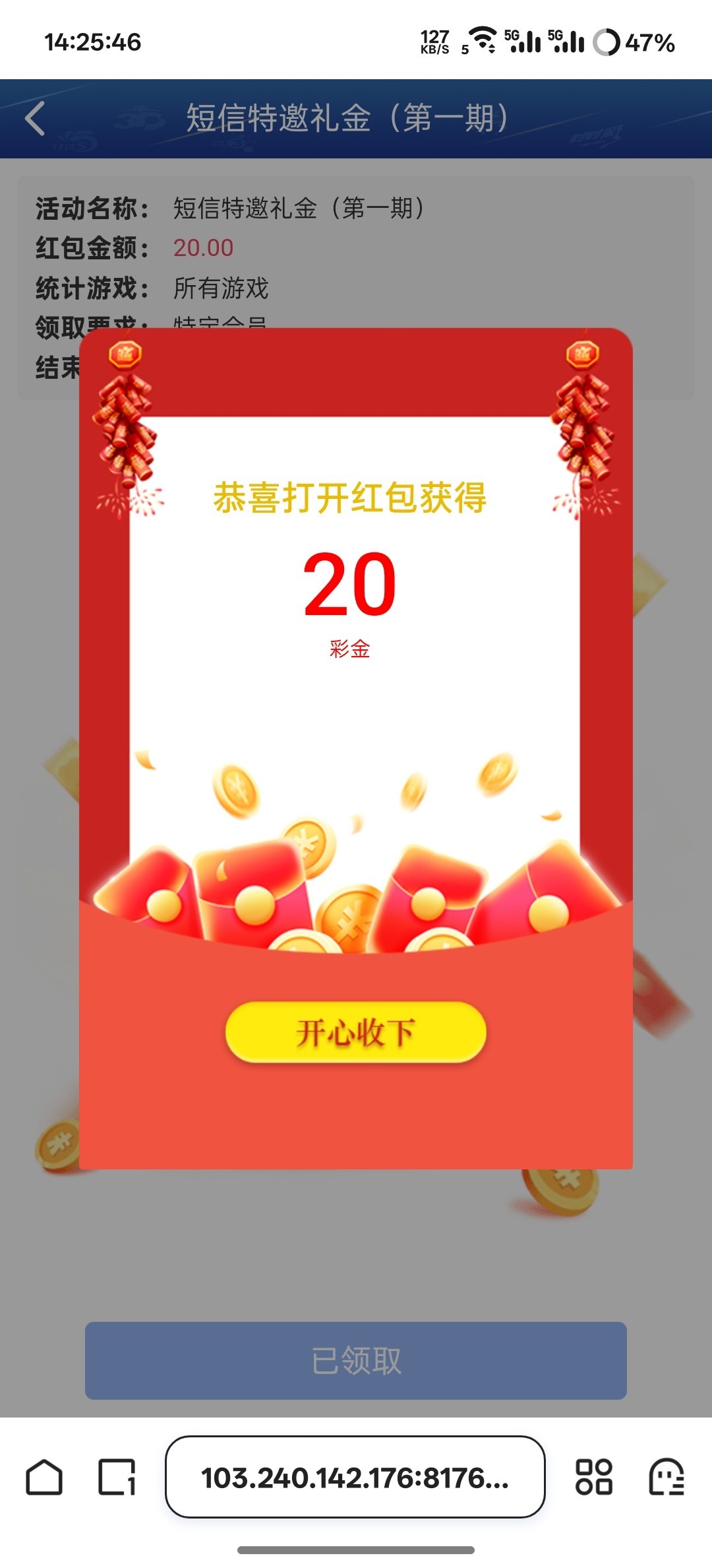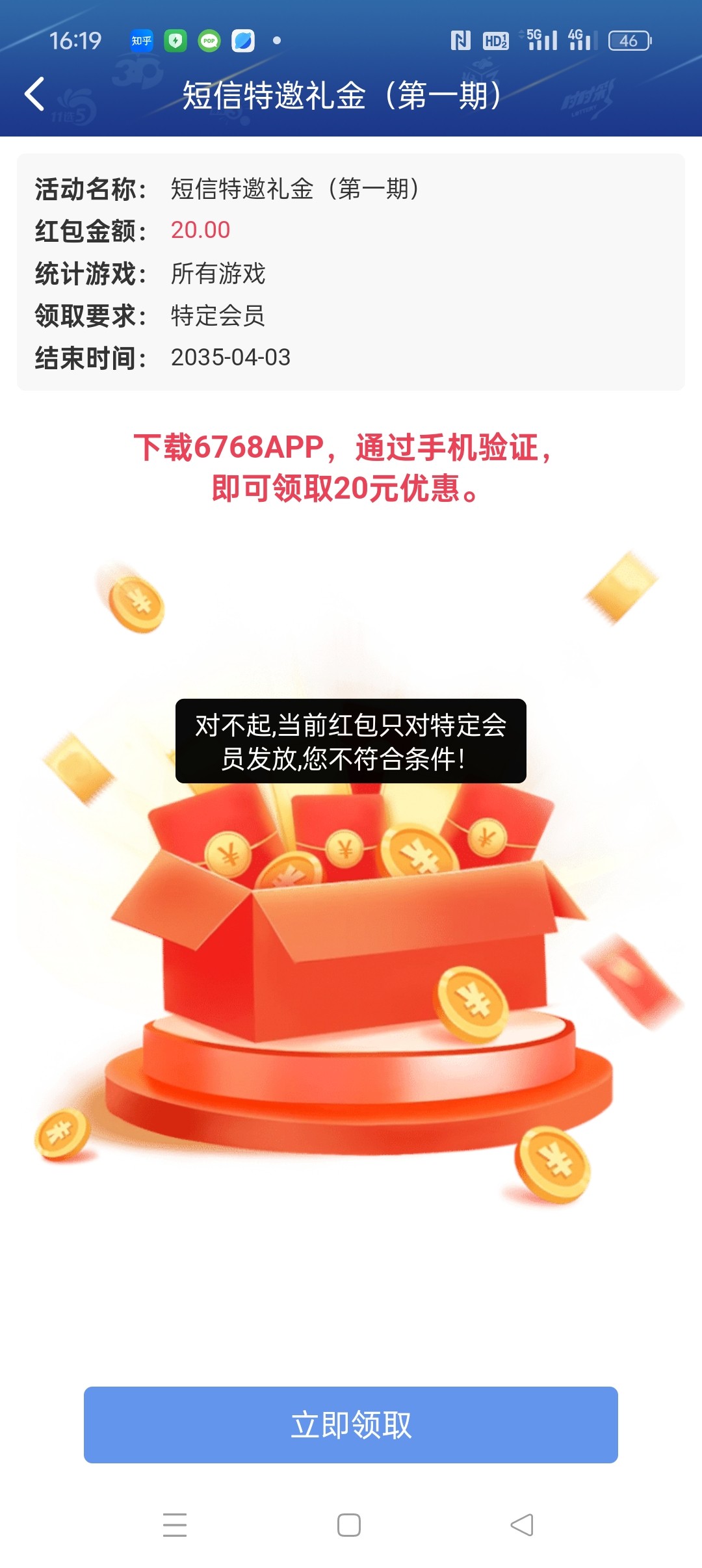 这台子前几天短信邀请送58,现在送不起就20了