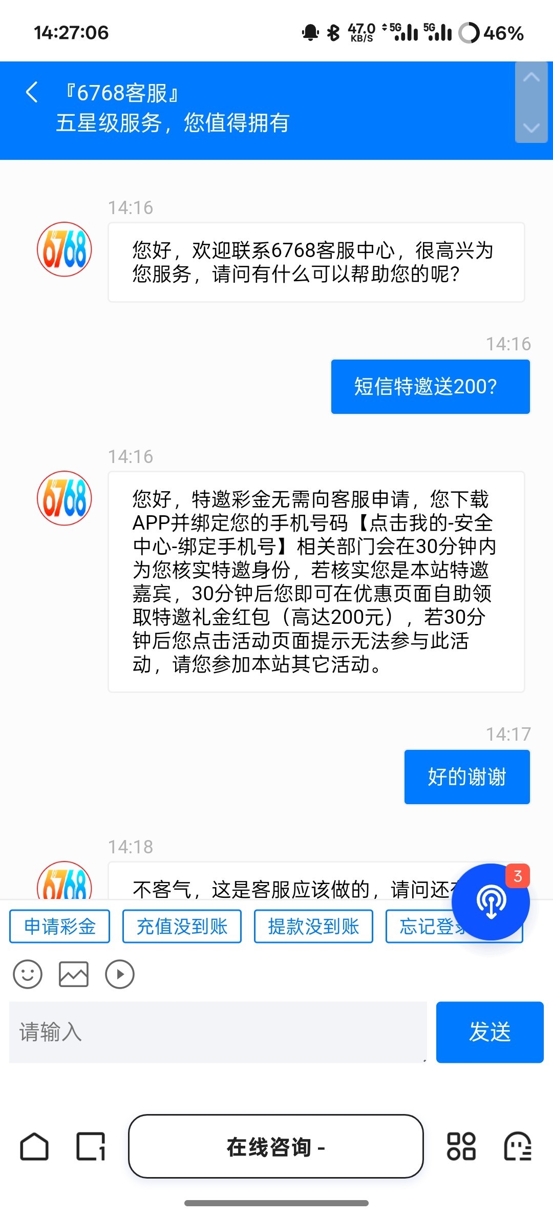 6768彩票短信特邀送20 出款自测白嫖不要充值