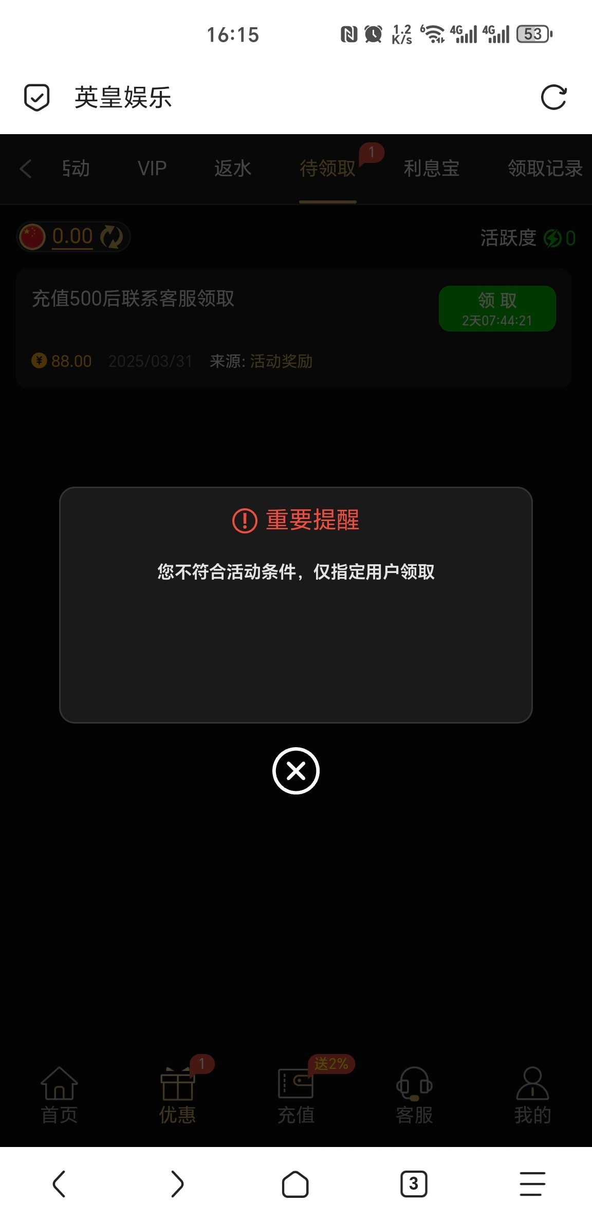 接到电话去看的,没充值过,有号的可以看一下