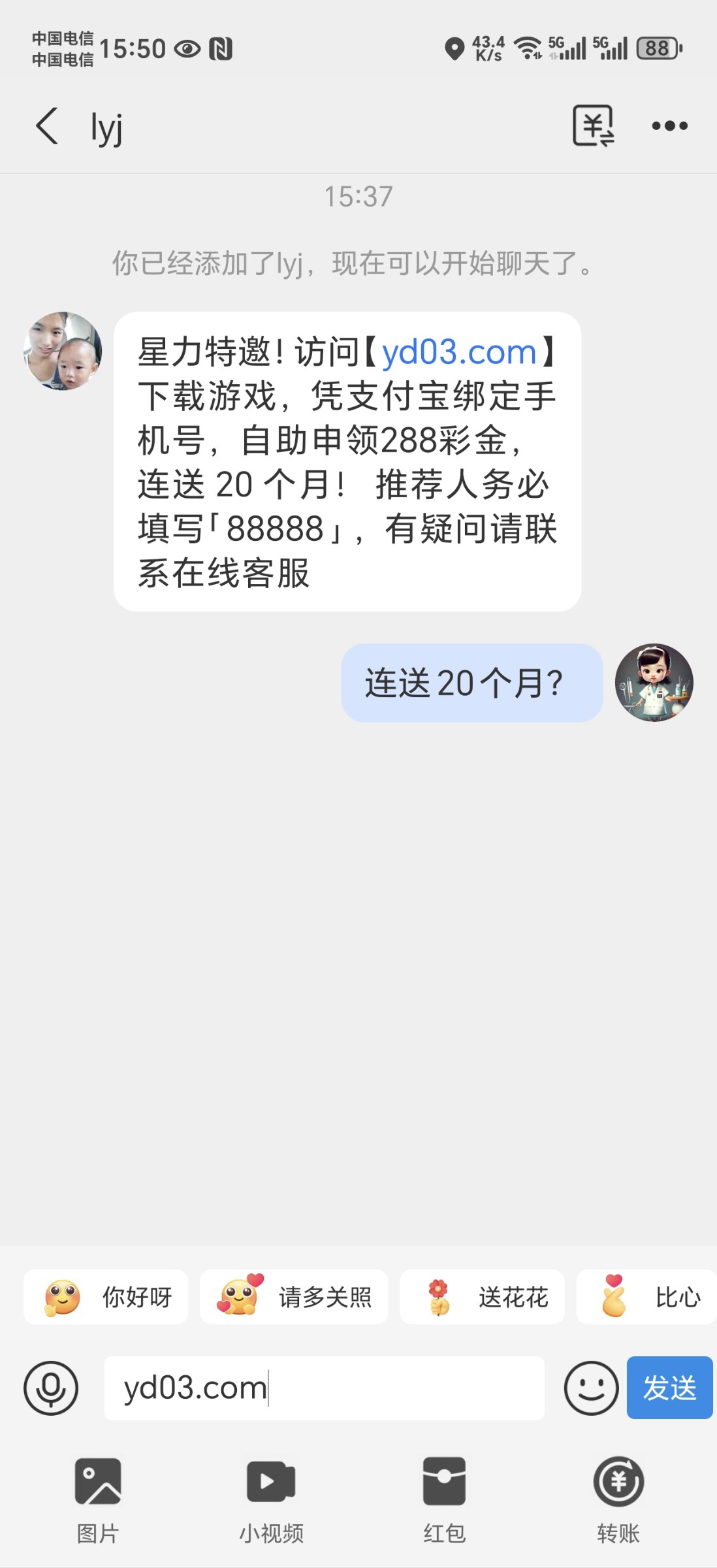 经常收到支付宝特邀星力游戏类的可以碰碰,特邀自助申请,连送20个月,3倍兑换88RMB,网址看图!没碰到不要来骂我,拒绝中出,内射