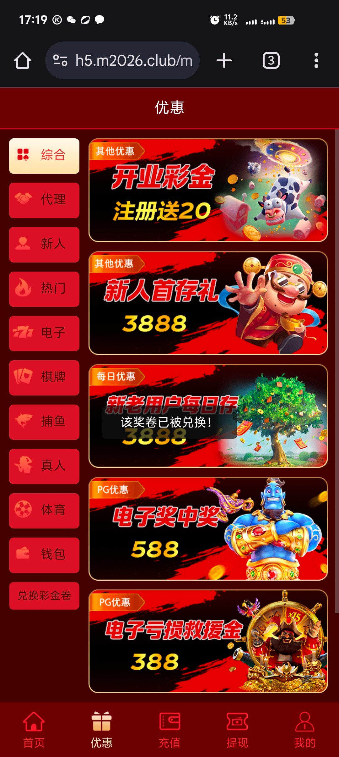 该奖券已被兑换?