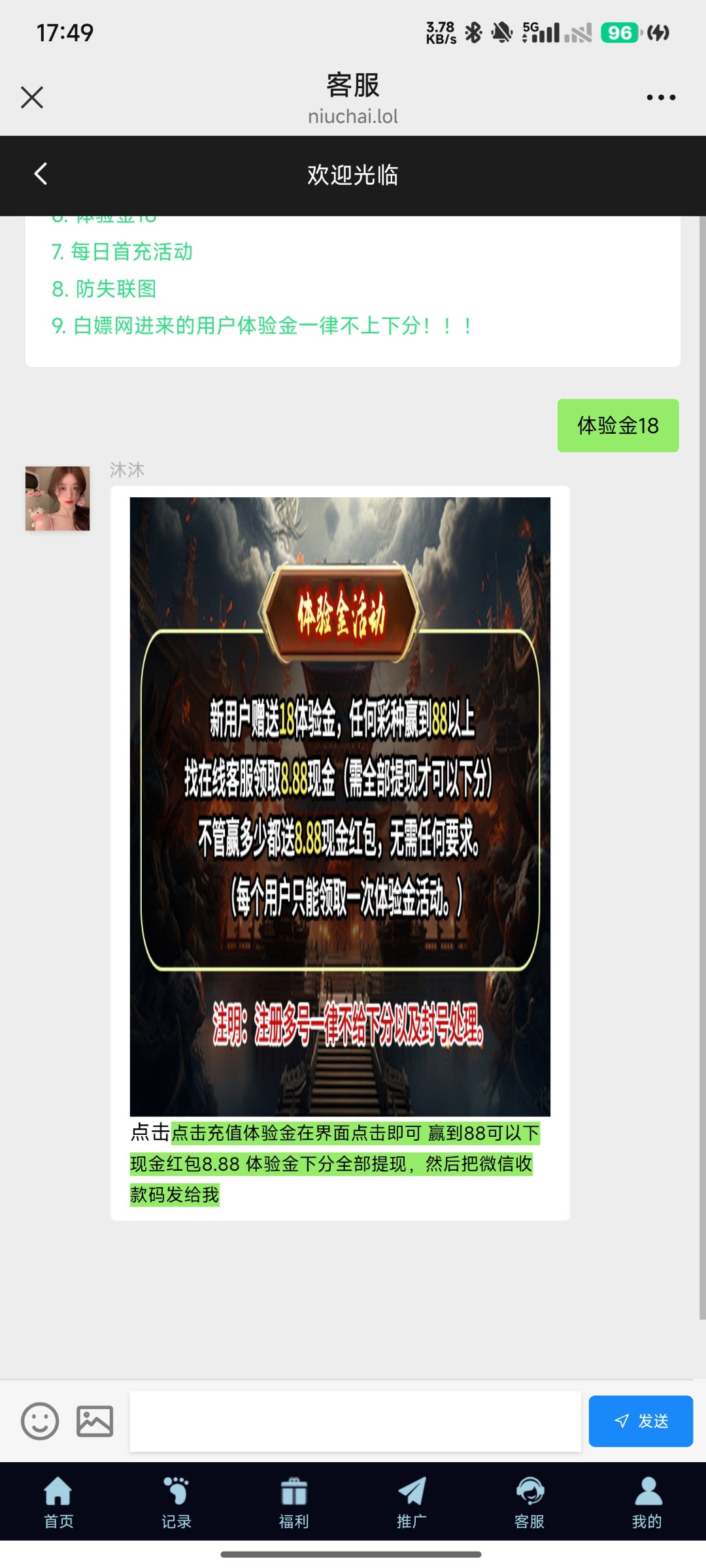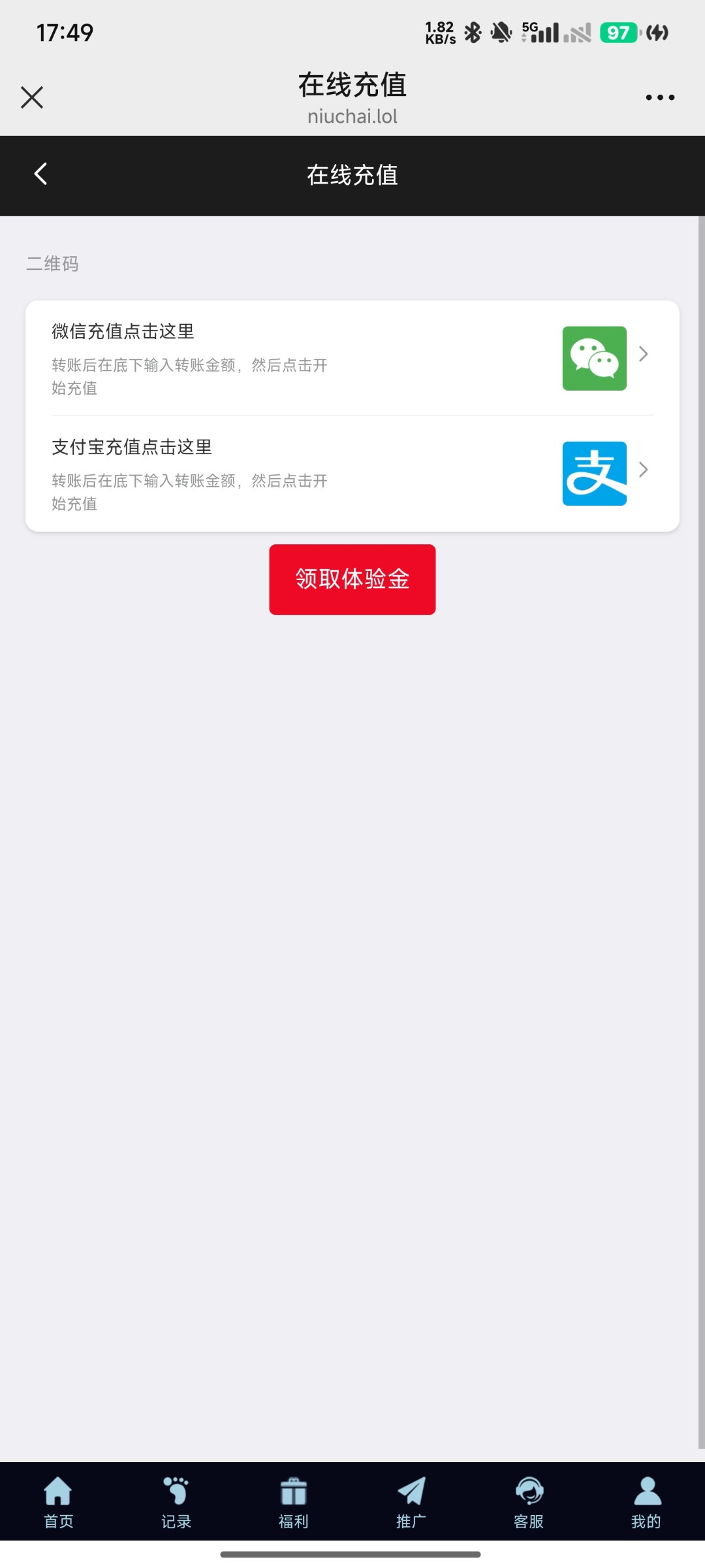 vx扫码登录首页点击充值,直接领取18体验金,打到88下8.88