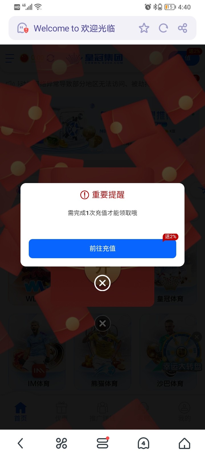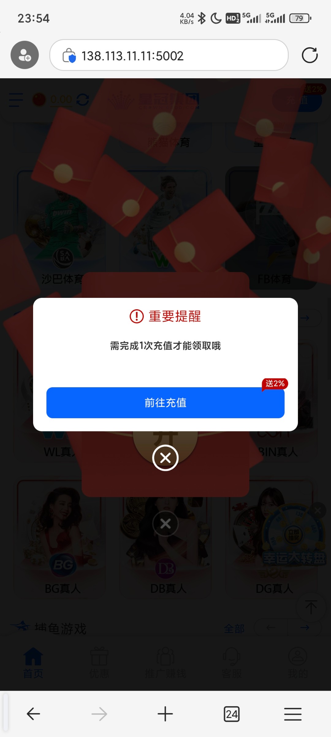 说是要充值的我操你妈,你爹领了3天也没充值过