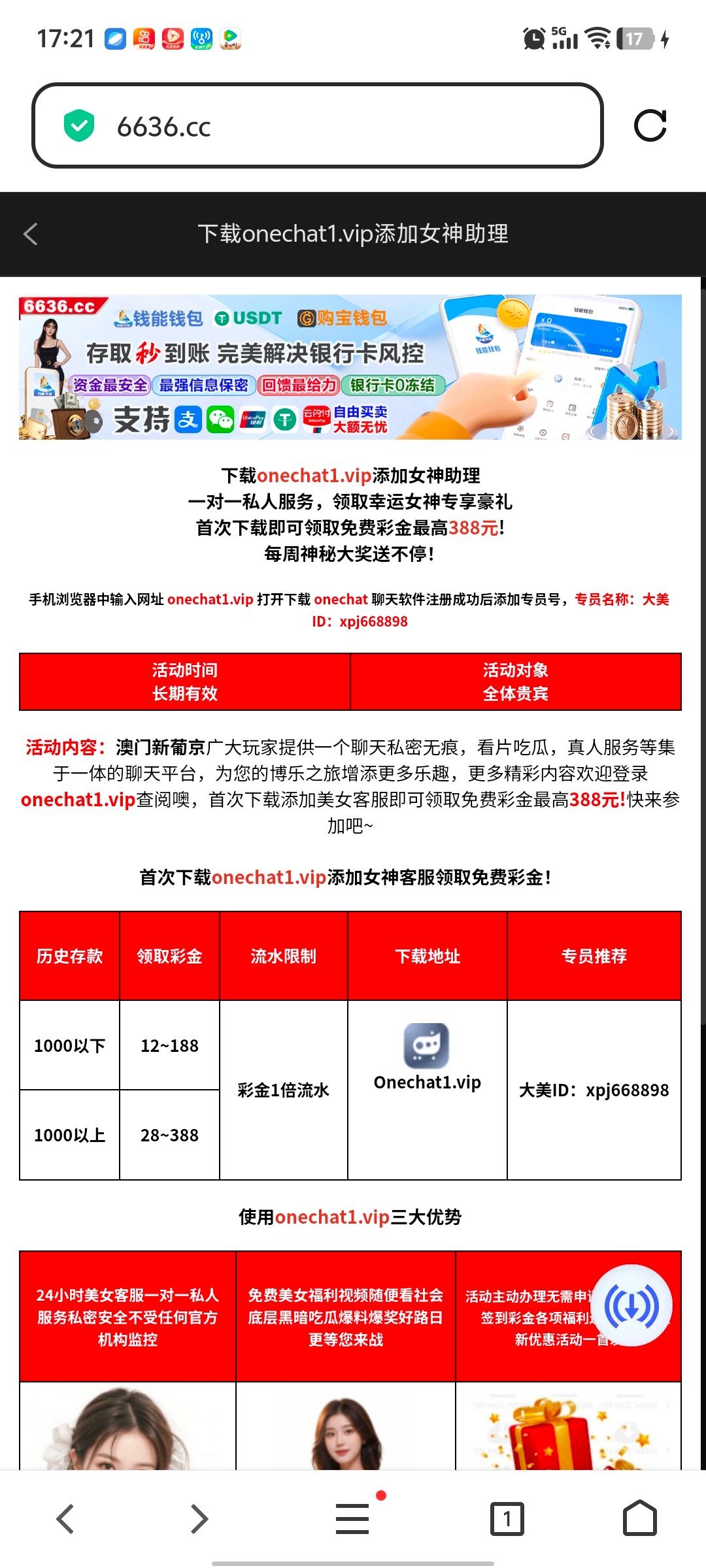 下载联系客服申请即可,不用充值也有,平台上面有聊天软件下载地址,没领到的老哥口下留情,速冲易黄,充值=送钱给狗庄。6636.cc