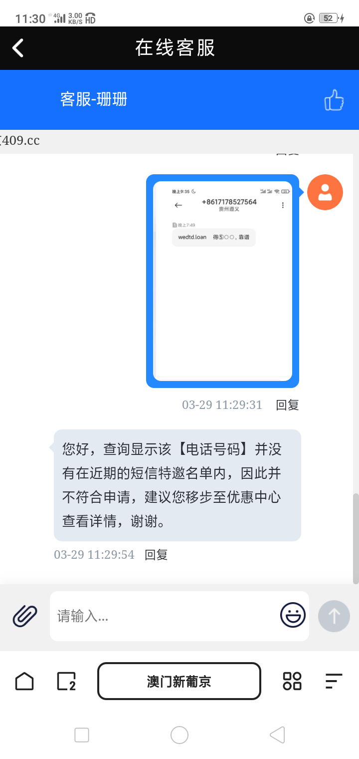 查截图就算了,还查号码,您好,查询显示该【电话号码】并没有在近期的短信特邀名单内,因此并不符合申请,建议您移步至优惠中心查看详情,谢谢。