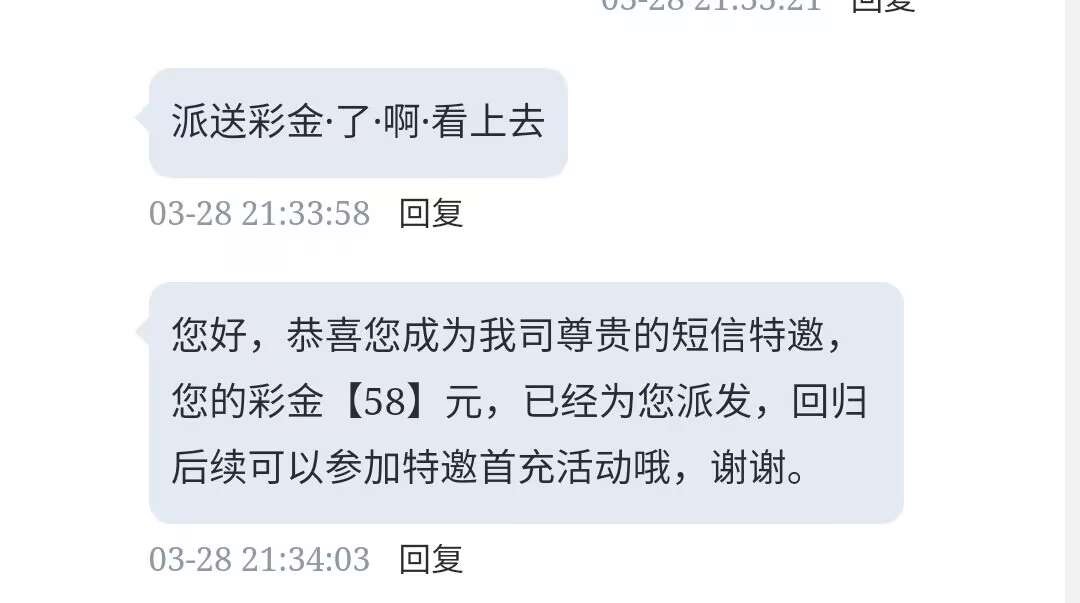 这个台从头到尾白嫖了2000多 之前注册好账号给你发短信 上去就有60多 时不时的送回访 打出来要充值百分之30 充了都可以充 前段时间打电话来送了188 提了100回充100送58 打到1000多 这个台小额不黑