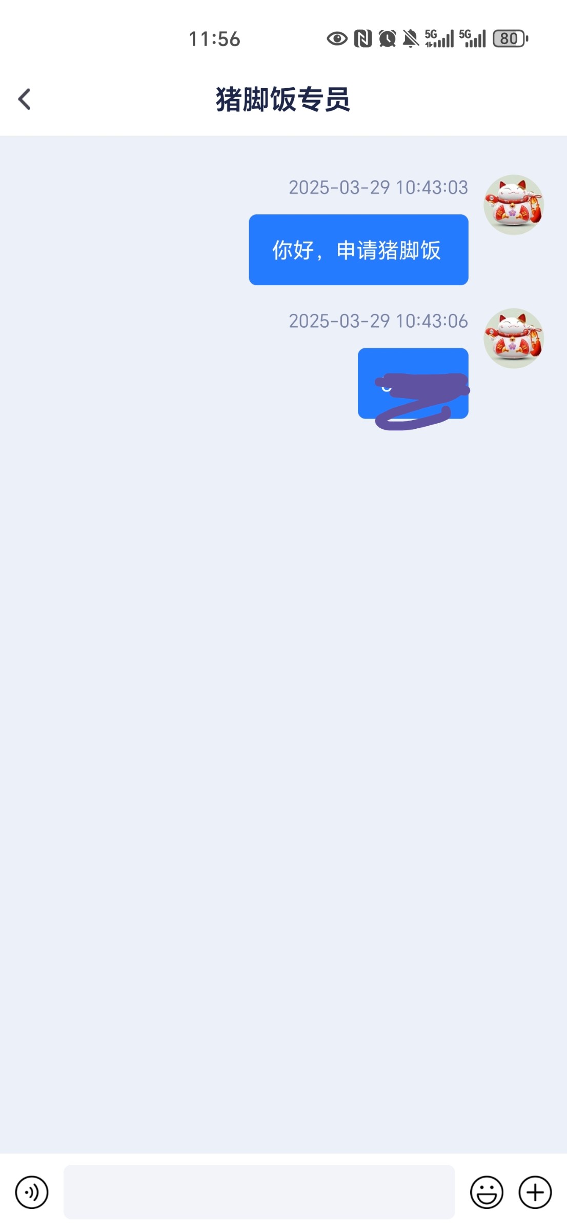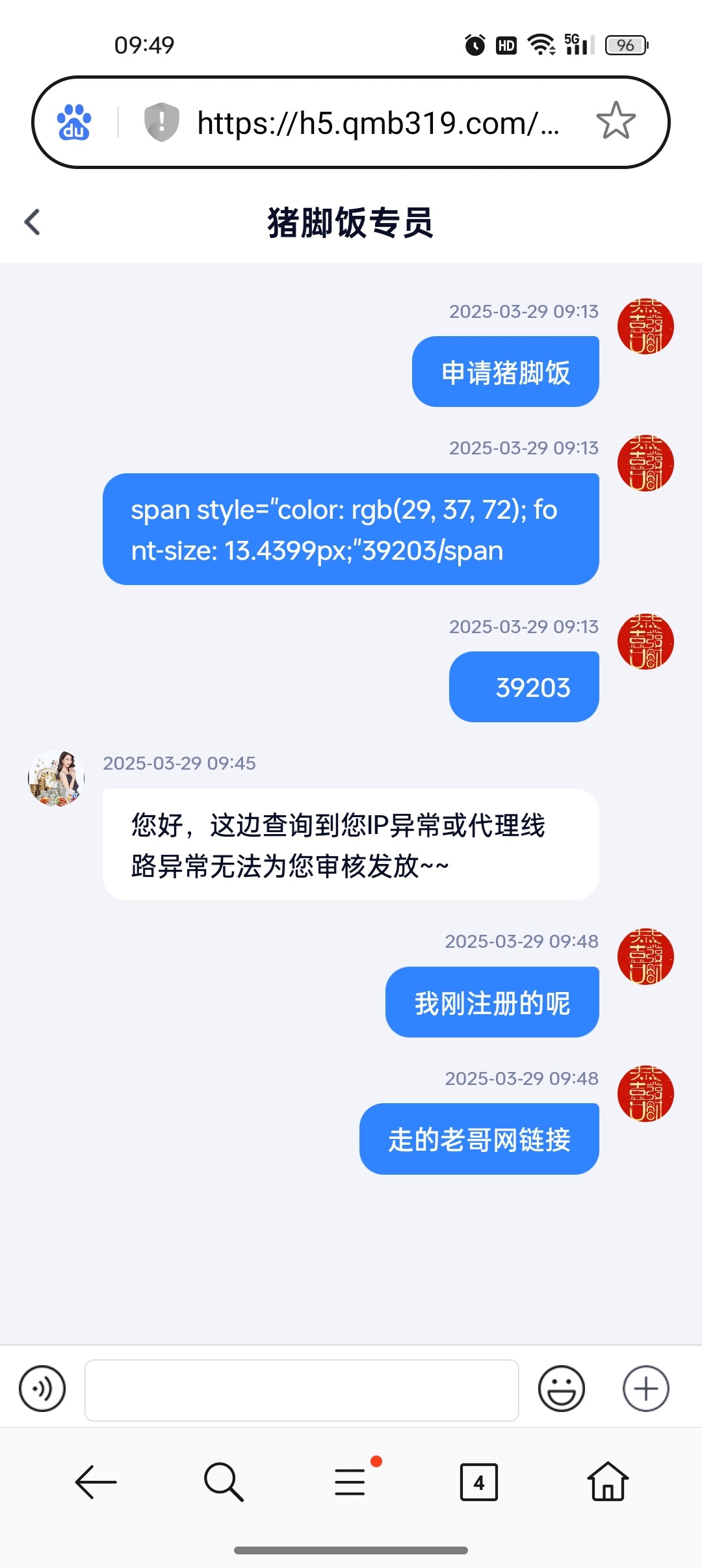 浏览器猪脚饭客服页面没有发送消息的按钮,下载了一个app就可以发消息了。还没回复我