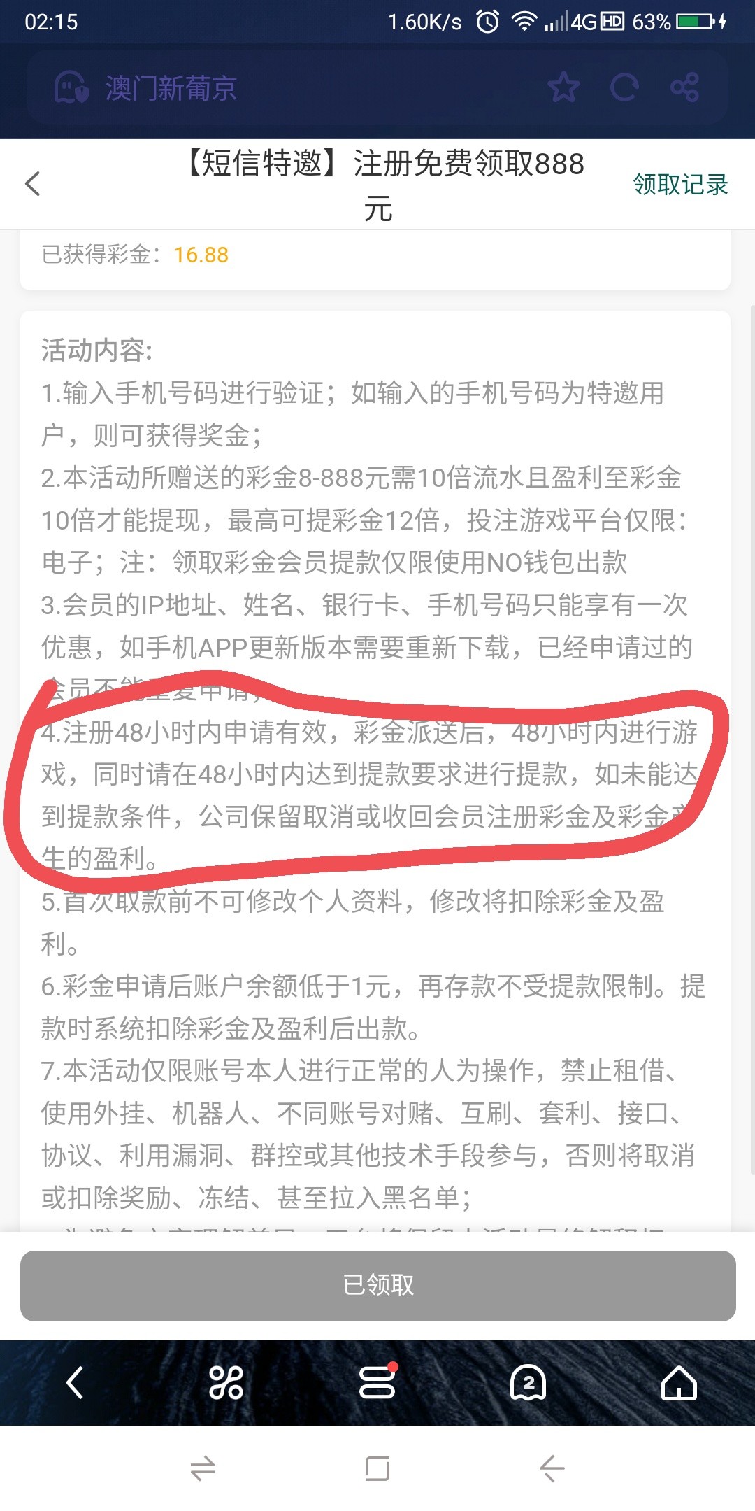 领了16.88打到288了怎么办,20号注册的,现在都过十天了,要求是注册两天内领取的,有什么办法搞出来