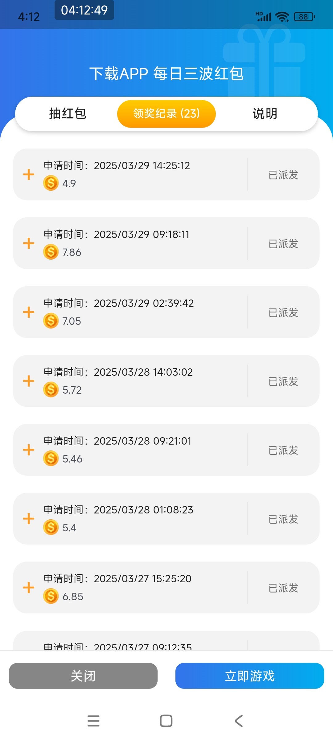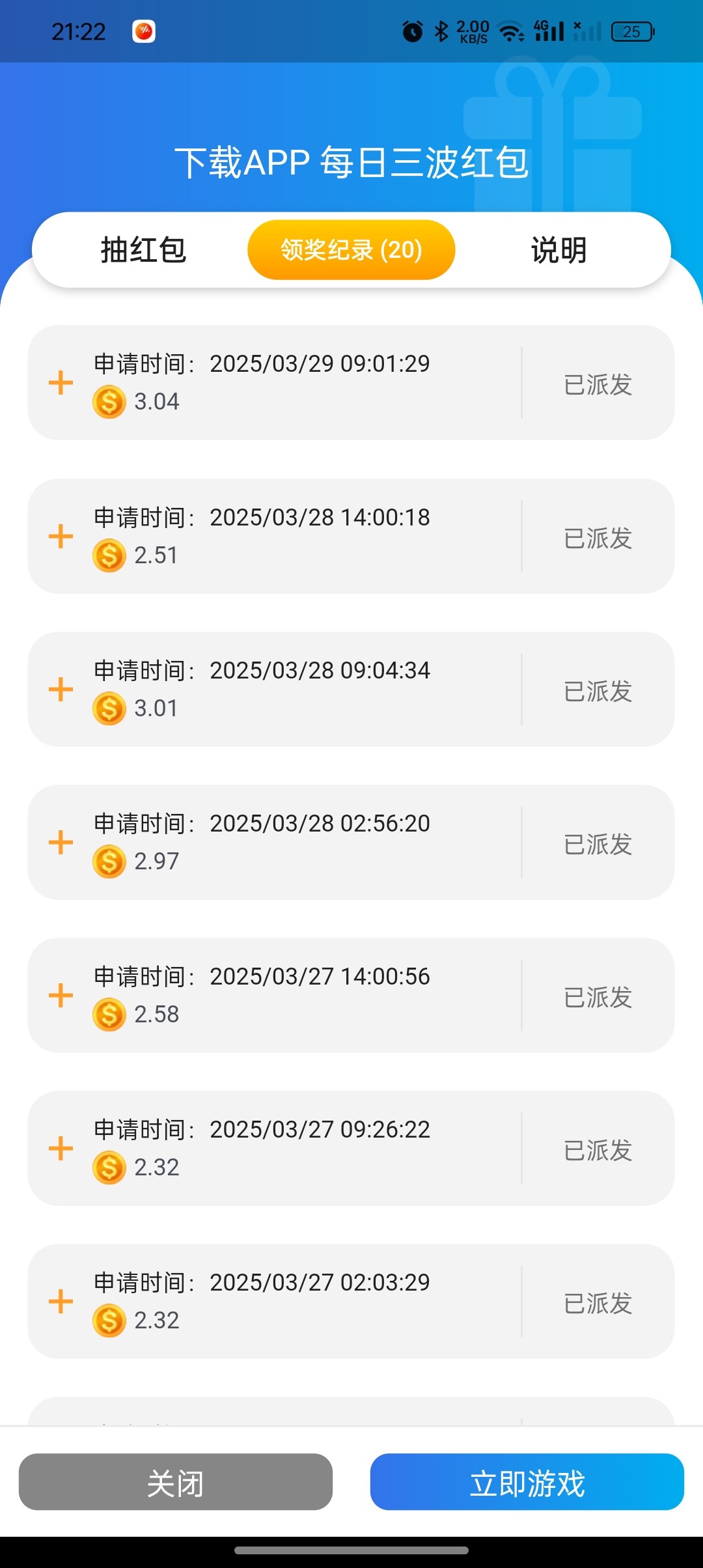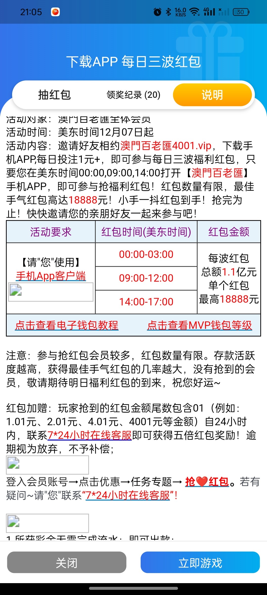 百老汇下载app登录可以每日抢红包,规则是投注每天只要投注1就能获取抢红包的机会,一天可以抢三次中午12点-3点抢一次,晚上9点-11点可抢一次,凌晨2点-4点可抢一次,几乎不用充值,因为还有一个每日登录红包可以抢6毛多,所以投注1的流水几乎是搞定了,每次抢的红包都是2-3块多,3.01可以获得5倍奖励,算是赌神项目,也可以说是每天吃不上饭老哥的福利,打到10块就能提。