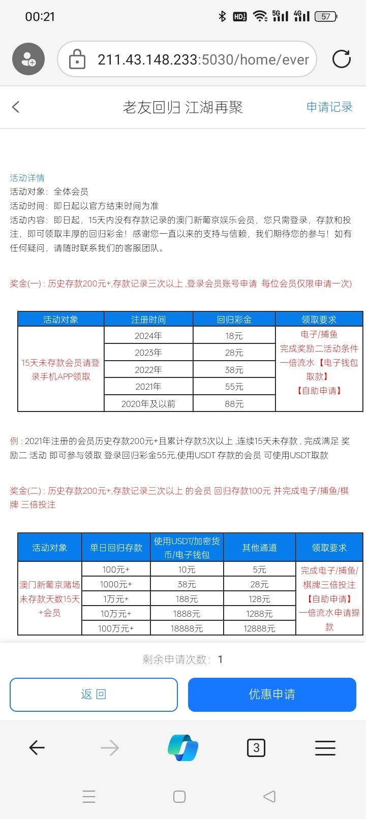 奖金一活动,历史存款有200+存款三次以上,可以申请未登录天数回归彩金 官网 4213.com