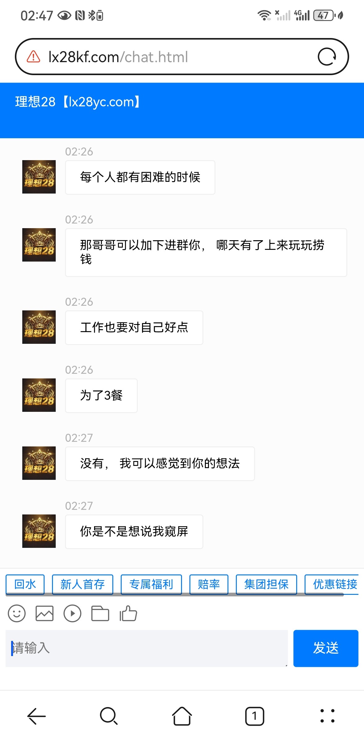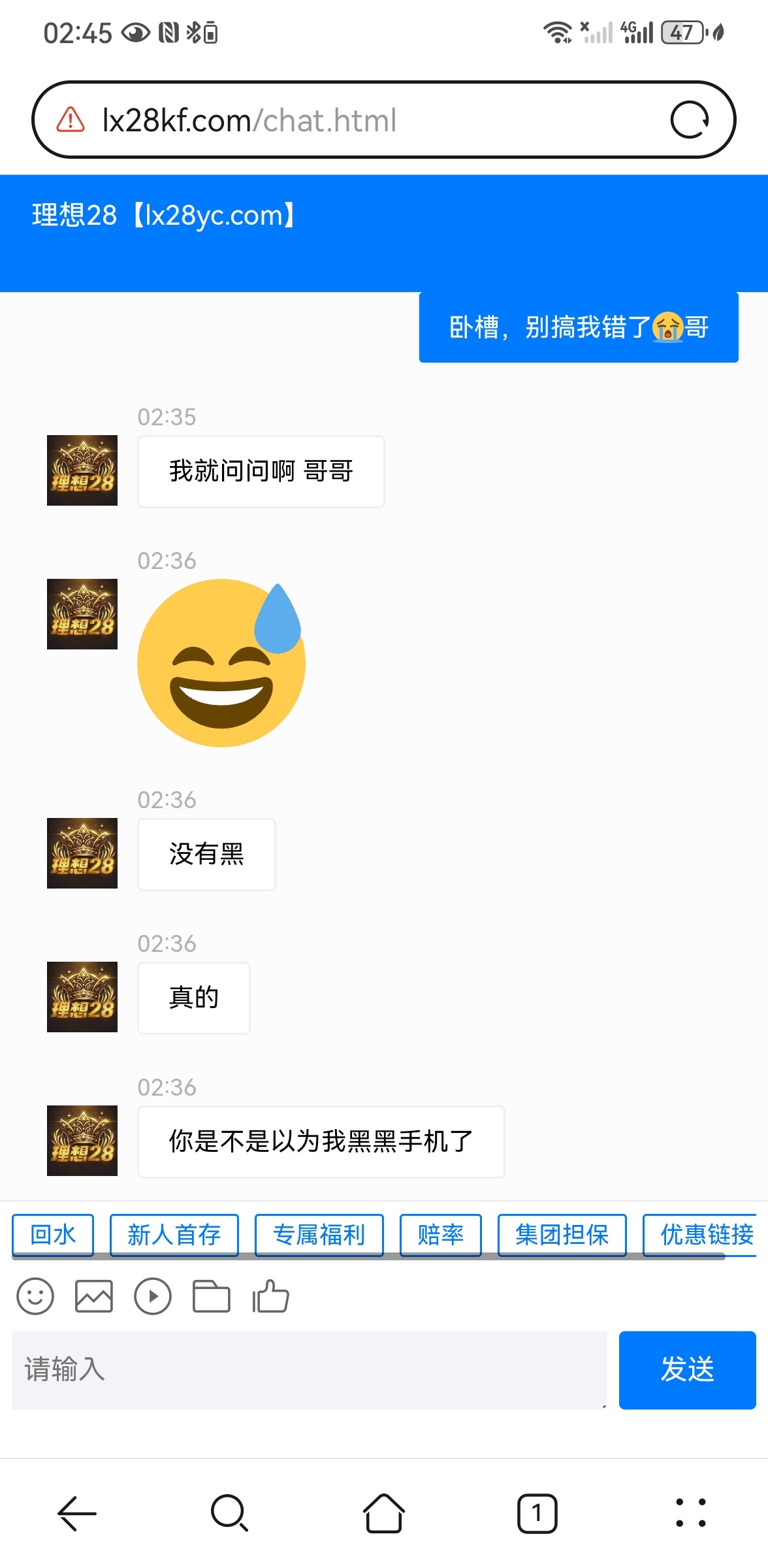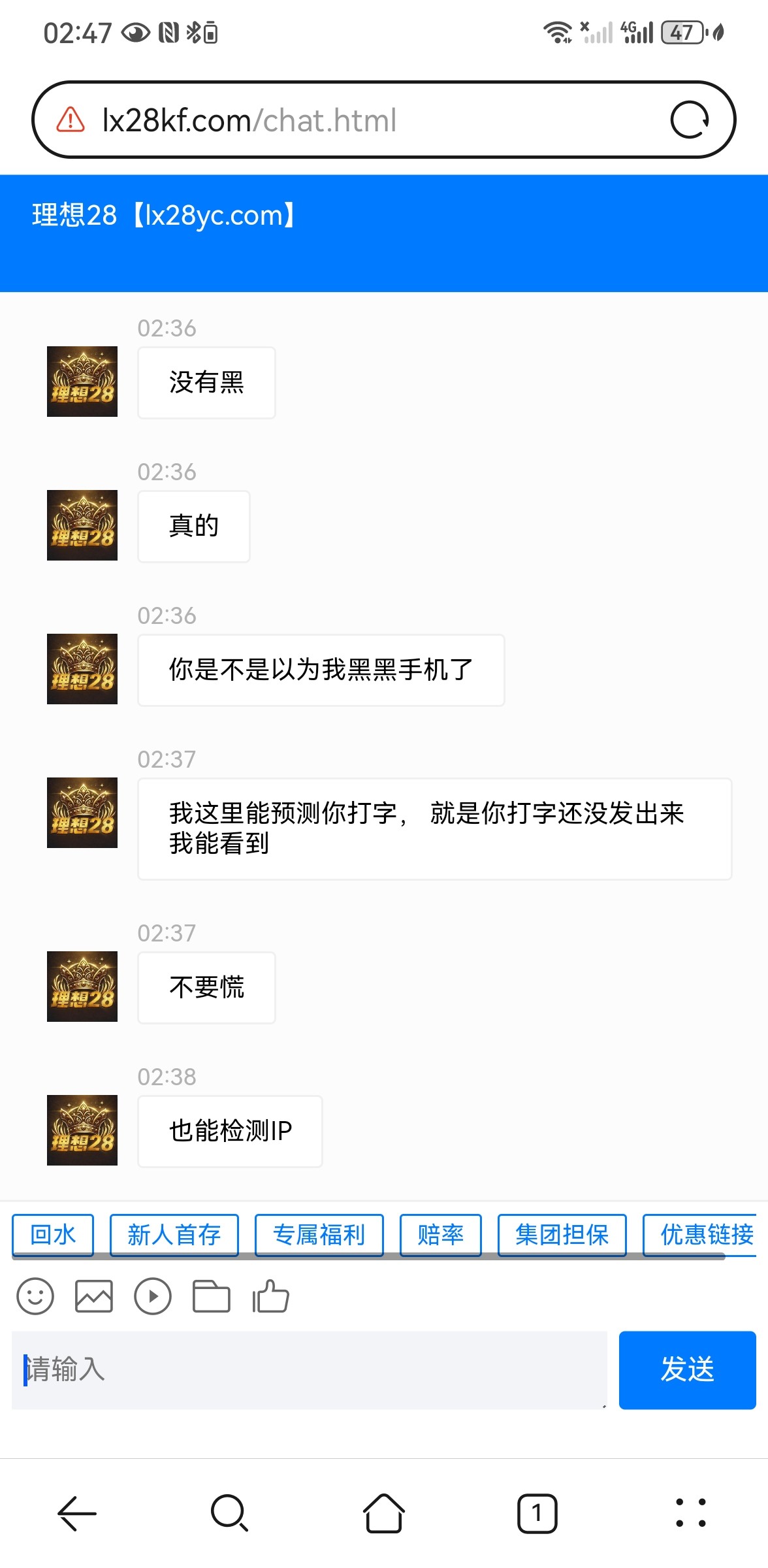 事情是这样的,挂壁了在找注册送彩金的台子,刚点进去还没发现有什么不对劲的,直到我信息还没发出去客服就回过来了,我立马感觉到情况不对,就不停试探他一直能回答,甚至还知道我后台挂的黄片卧槽了,是不是狗庄这网站有病毒把手机黑了,会不会获取相册搞我通讯录,大半夜的吓我一身汗,有兴趣的老哥可以去看看,包细思极恐的。