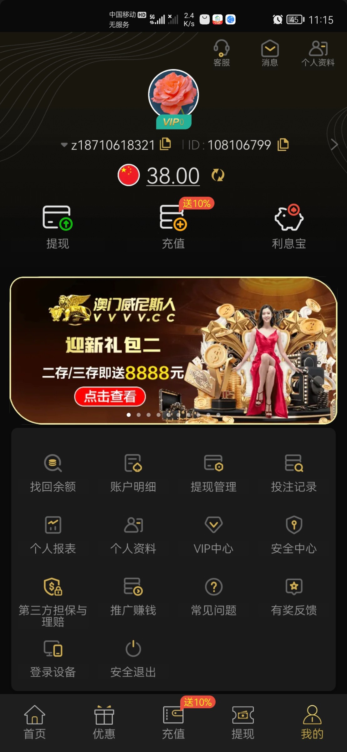 jiabaoyu ▶ 九尾 你自己有错在先,怪人家平台?这台子根本不黑,我都玩了5年了,原来叫银河,也是打电话送38,我白嫖一千多都出了。而且每次回访都送38或者58。良心台子 9月前