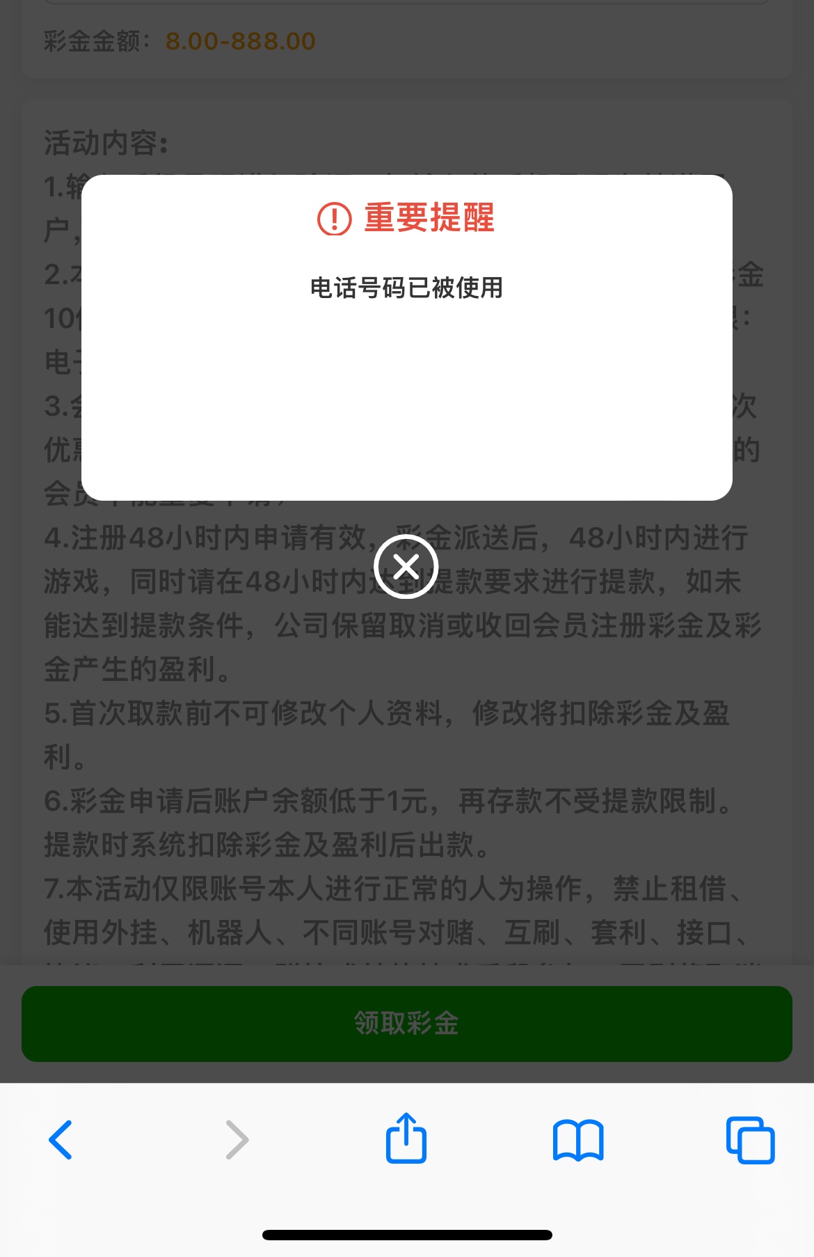 电话号码被使用
