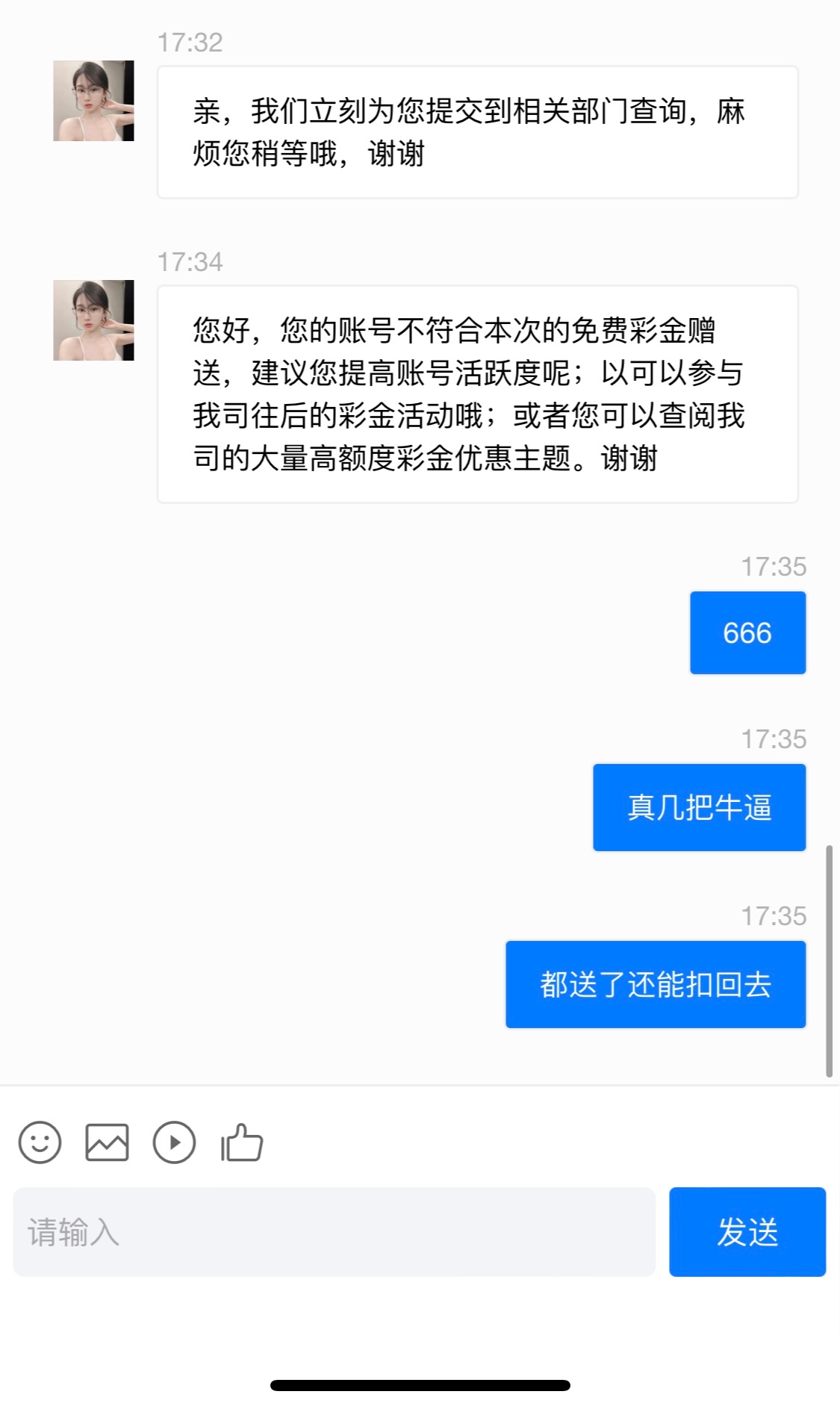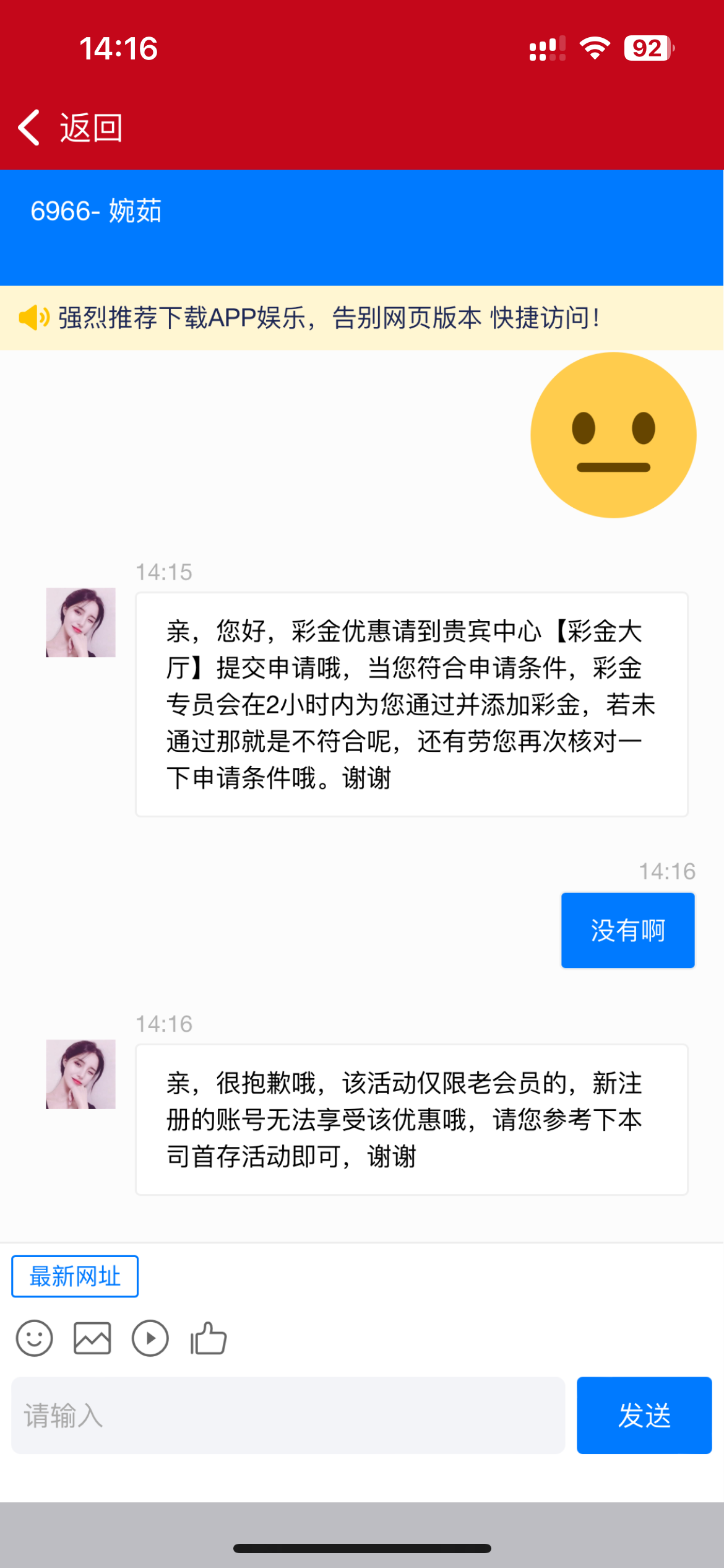 测个勾八啊,那客服跟狗一样,给他老号说没有注册然后问他是不是要注册。注册了说新号不给参与