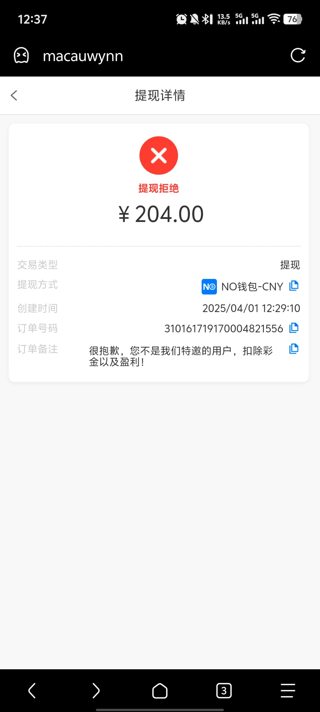 黑台子,打出来了,提204被黑,拒绝理由奇葩的一批,不是特邀扣除彩金,哈哈哈
