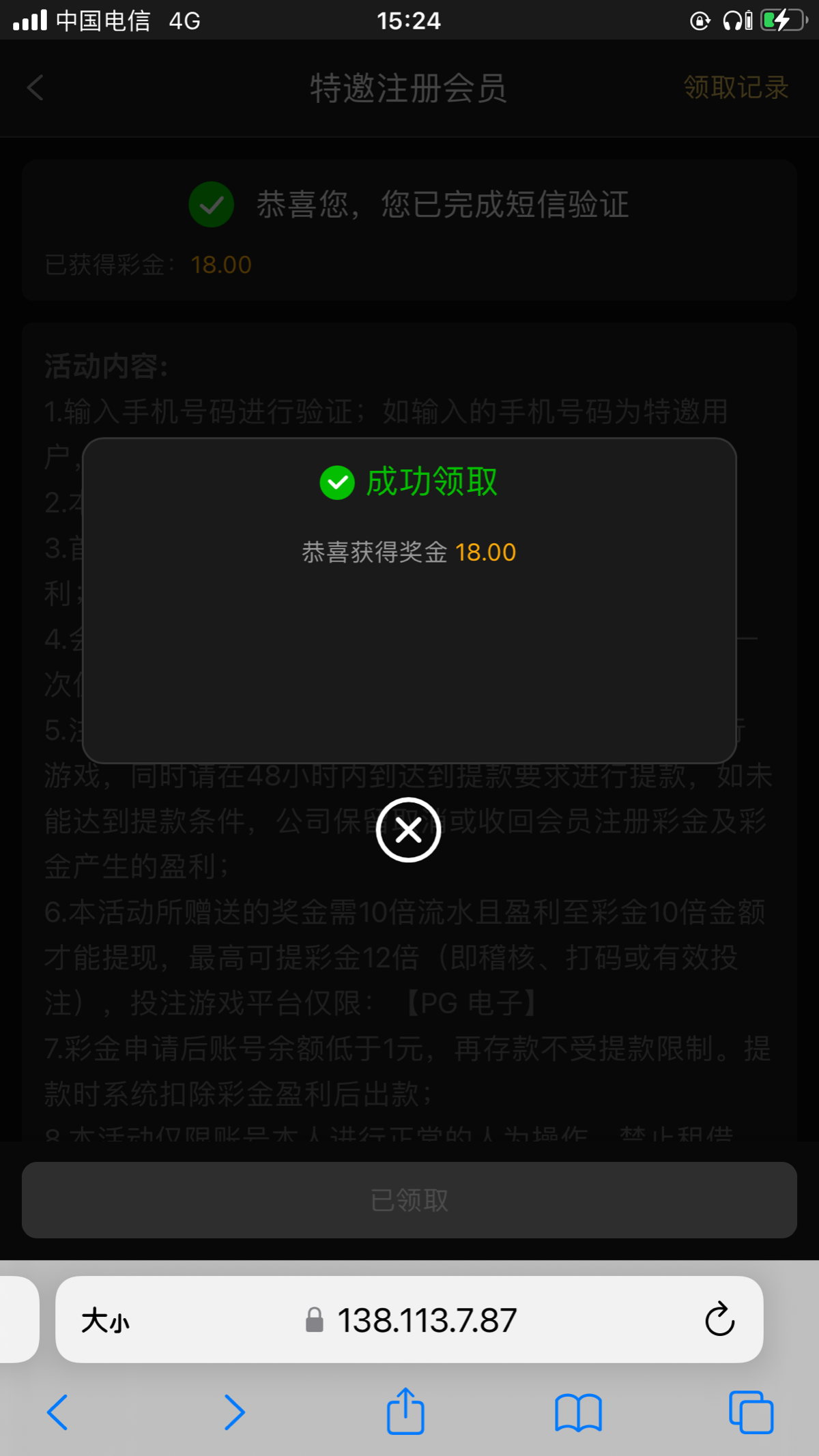收到这个短信的去试试应该可以领取到特邀彩金,我领了18 短信地址 70343.my