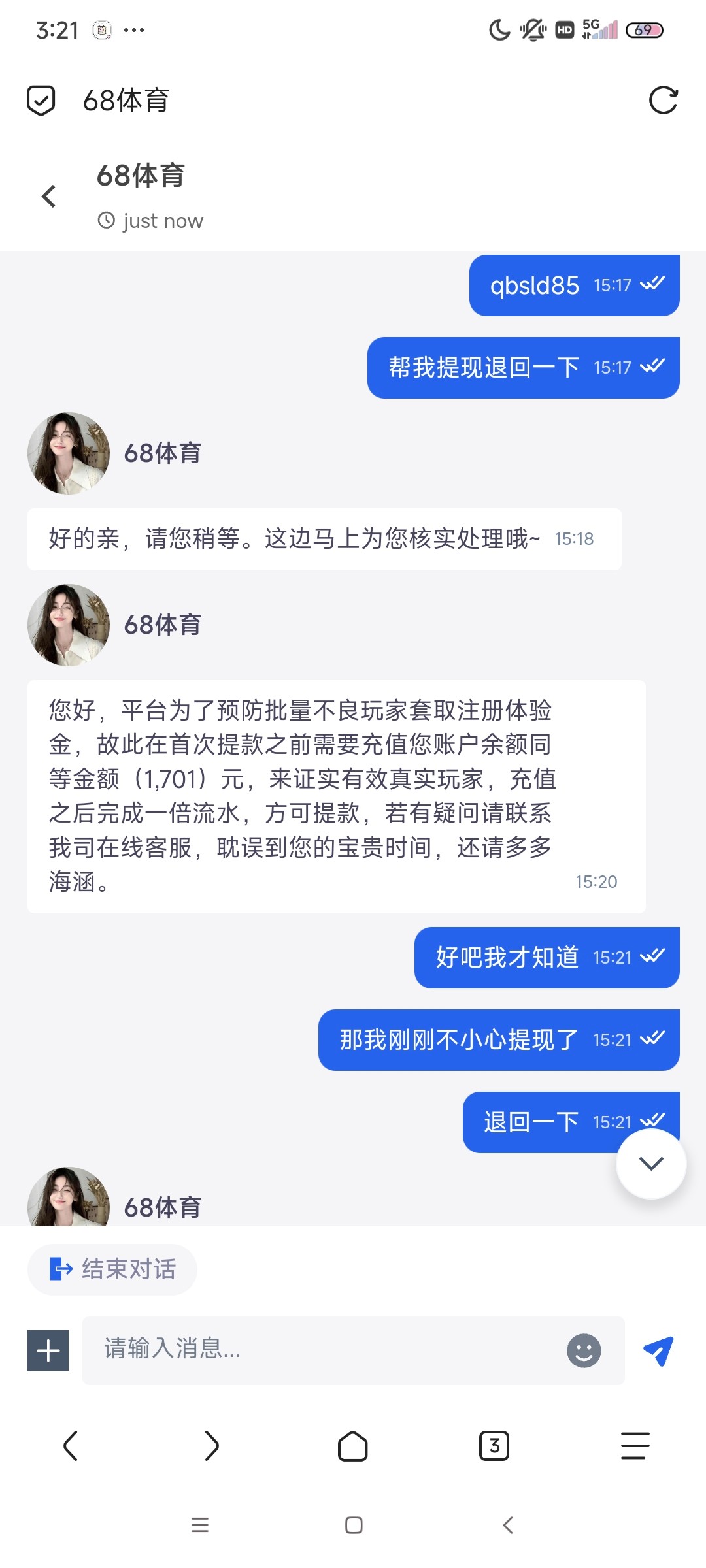 这个跟万濠一家的,以前还好,现在挺黑的。去年68体育刚出来时免费送彩金白嫖了几百,后续回访就是跟万濠一样提多少要冲多少。