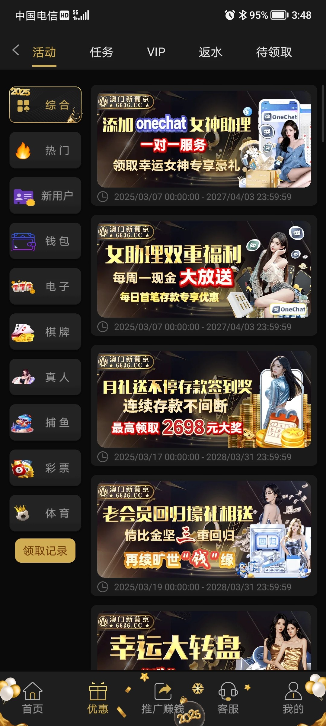 首次下载onechat彩金是根据您账号历史存款的哦, 经查询您的账号是没有充值过是不符合哦