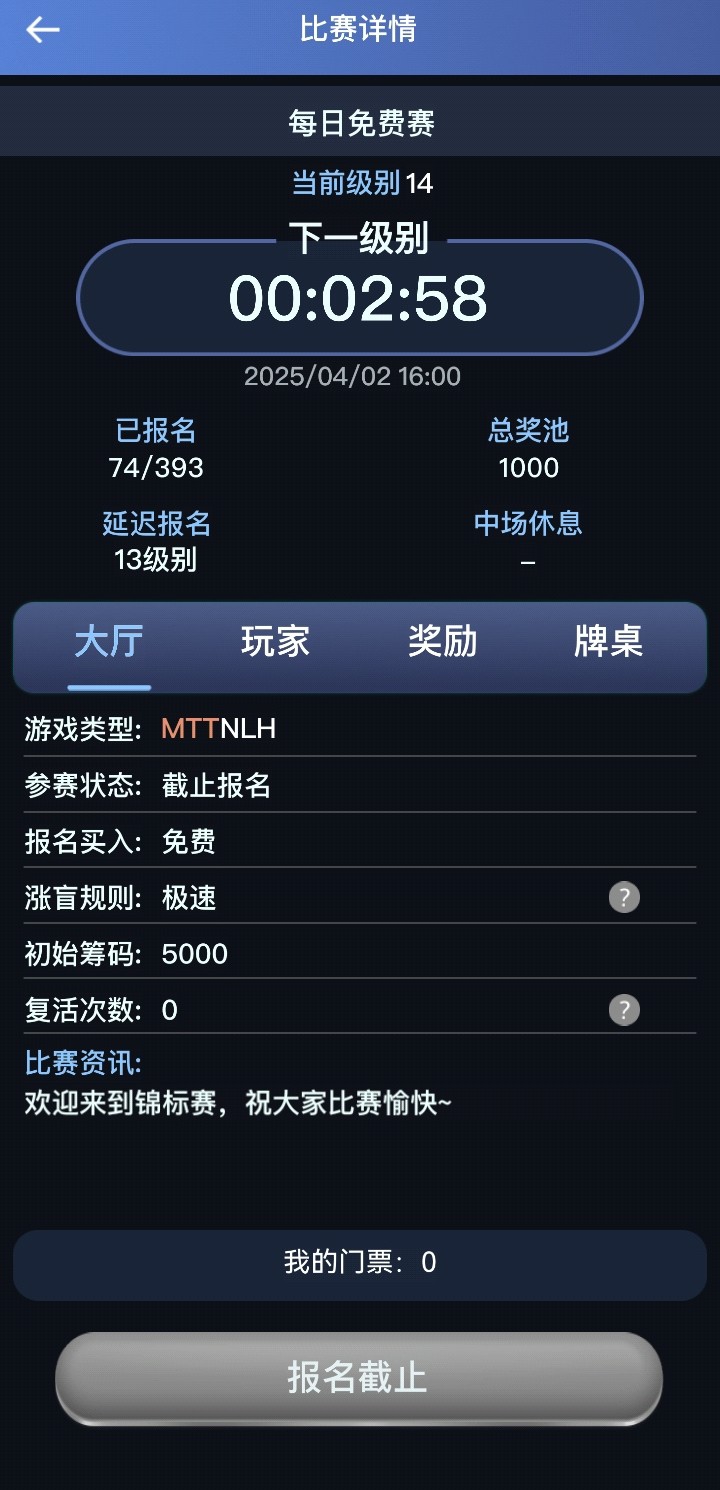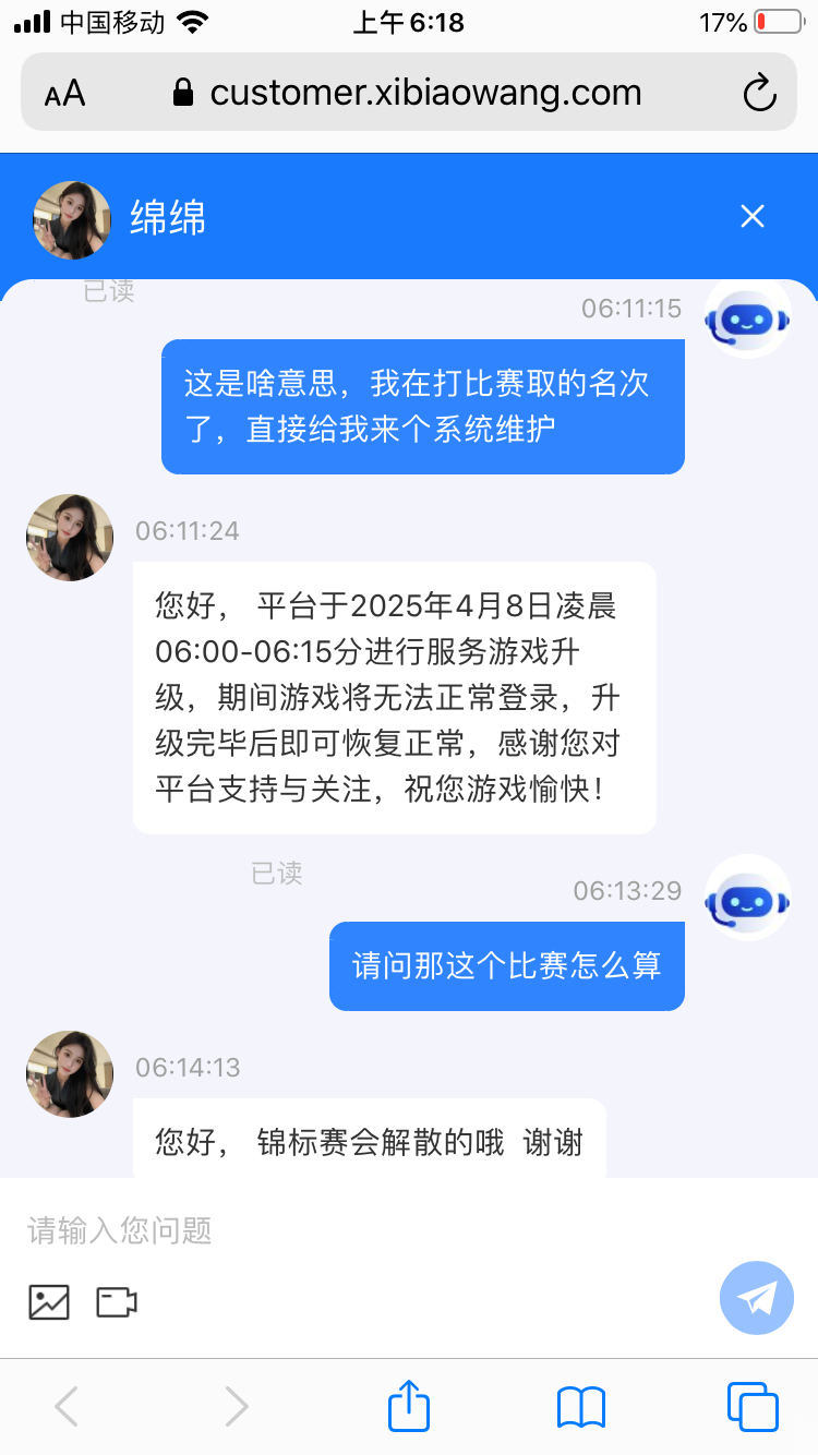 中出这个楼主,这种纯黑的台子也发出来坑人,刚要拿冠军了直接给你来个系统维护,然后几分钟维护好了牌局直接给你解散,而且不恢复,太黑了