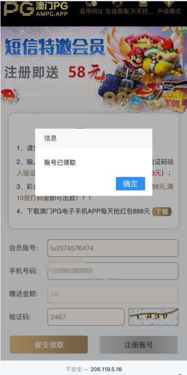 不能乱输账号去试得先注册,试了就申请了。你注册好在去申请就显示已领取。。