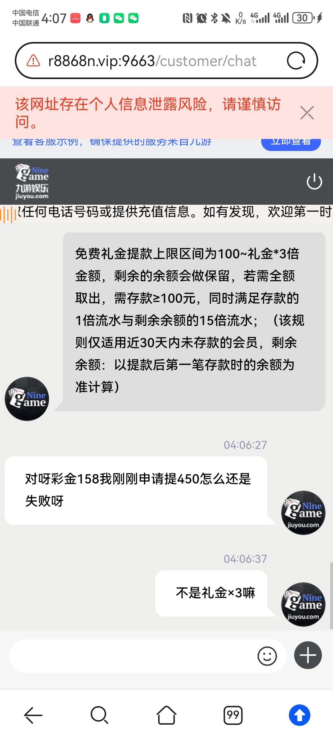 之前充过几百一次没提过,然后昨天领了那个158的回归彩金打到了1700各种理由不给出最后直接说要我充值100然后打1800的15倍流水,然后我找送彩的app客服说半天才出了三百,然后就叫我充值,我充了一百跟剩下的打了只剩600多了,我就提600结果直接封号,我一直在拉电子说我违规操作纯大黑笔,玩不起别玩