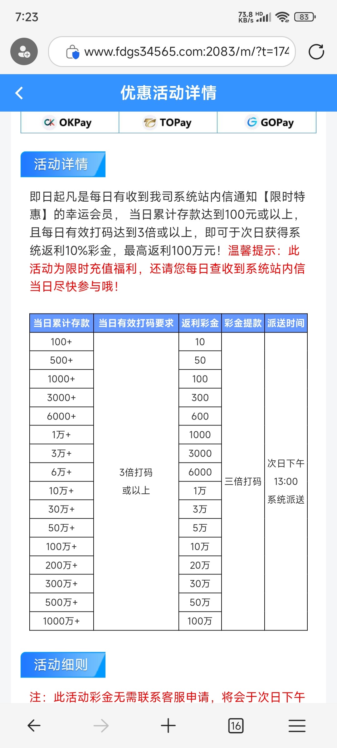 你这是要了老哥们的命呀,捐了300打了500流水,坐等明天返利10快,我还以为有30呢结果还要3被水,输了钱还要受气,这种福利就别发了,