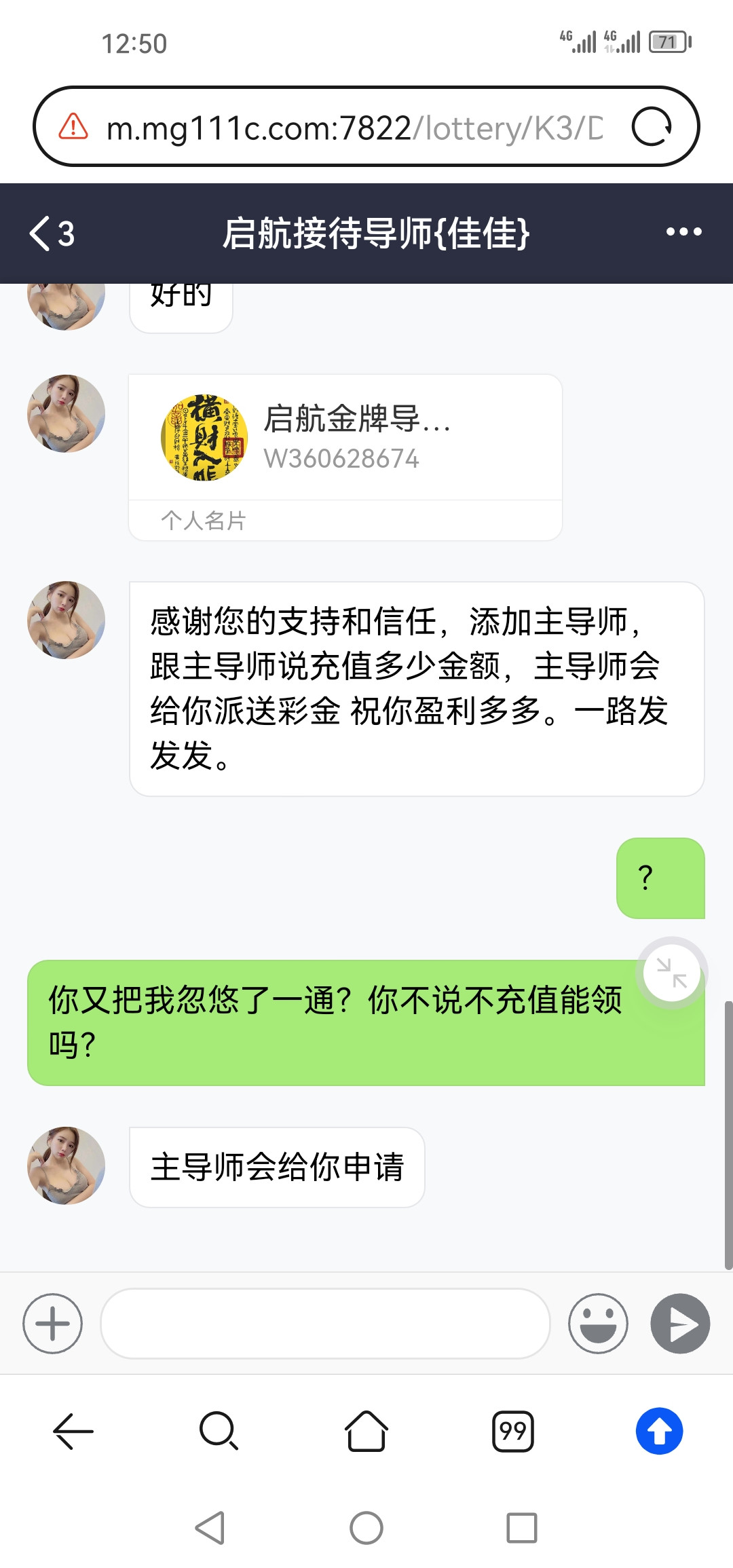 我是收到邮箱特邀的,不嫌麻烦的兄弟可以先去加qq群,然后有网址,注册好了进微聊,那个佳佳问你一通,然后让你添加修另一个人,会叫你充值,你说不充可以领吗,他还是会给。网址 mg111c.com