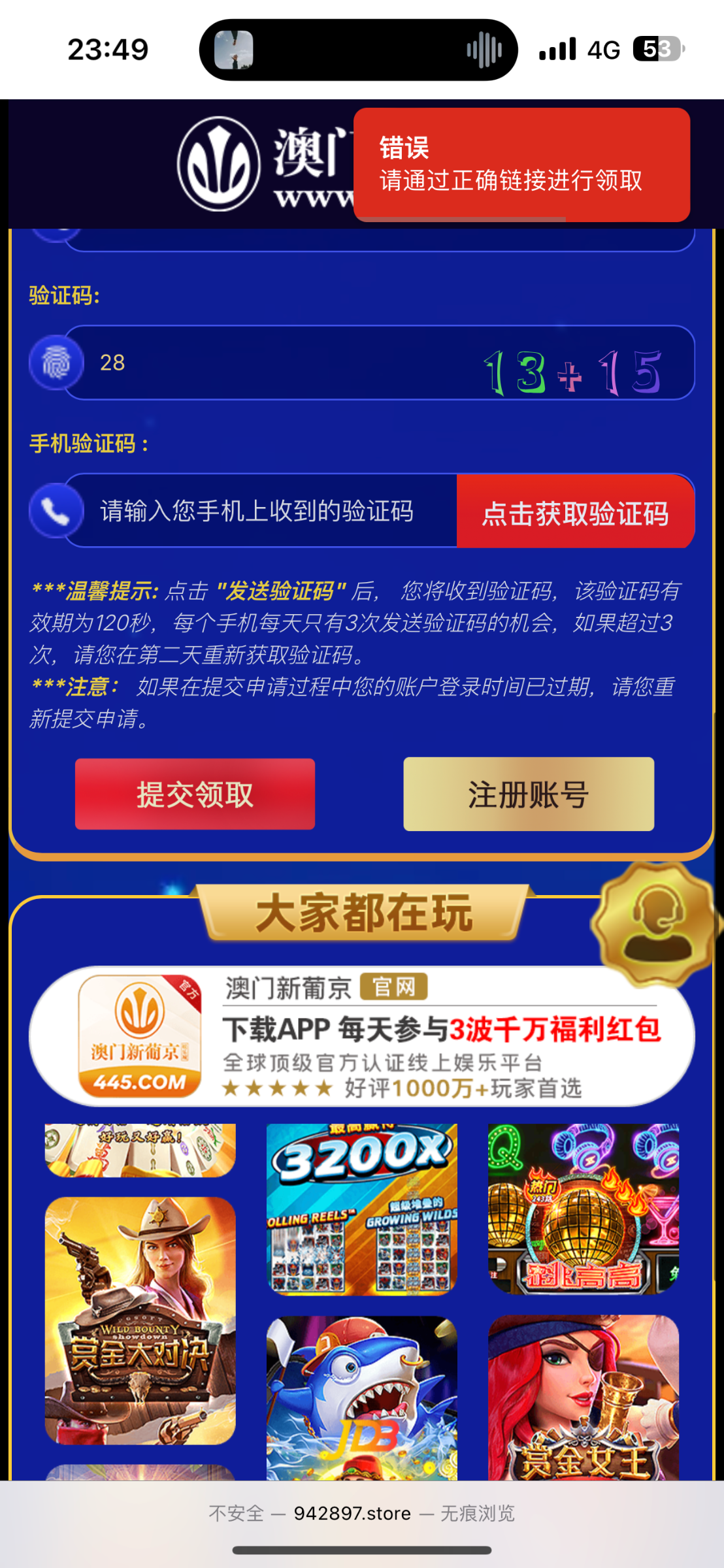 领取提示请通过正确链接领取
