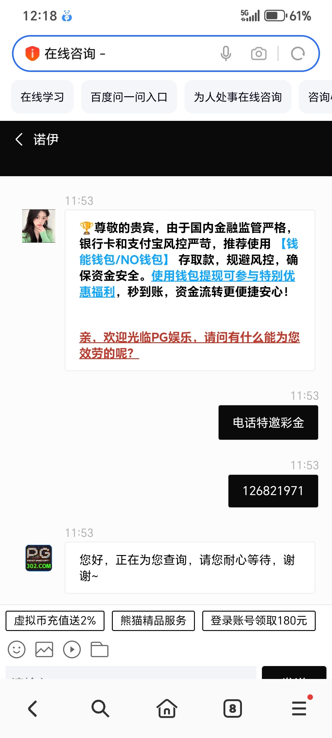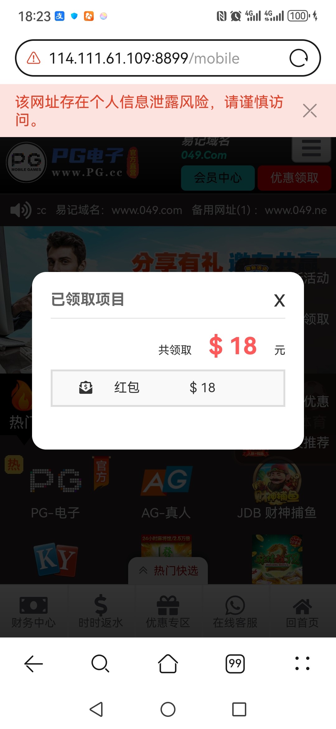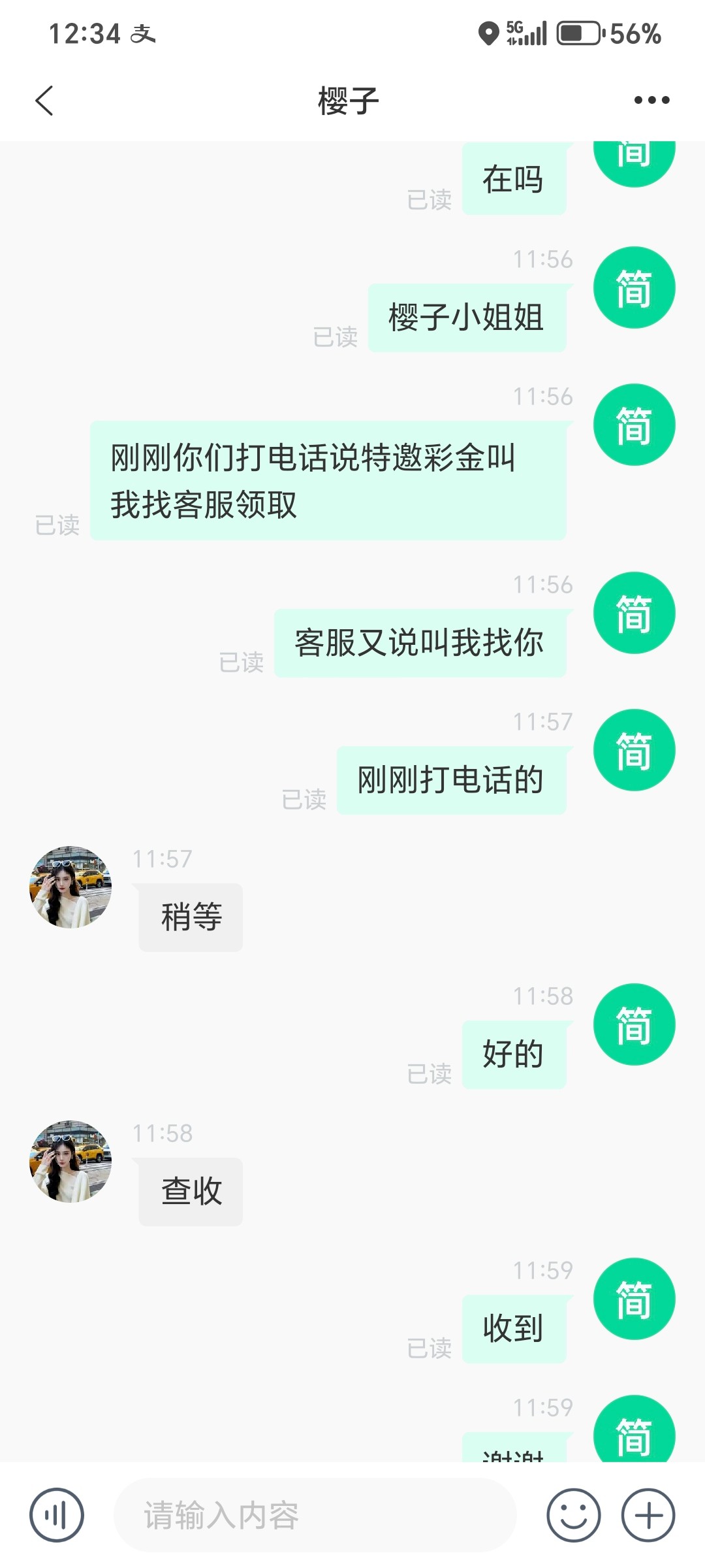 晚上没事上号一看有18,没打出来,中午又接到电话,问我有没有领到彩金,我故意说没有领到。叫我加专员直接领到88,打到400下了。