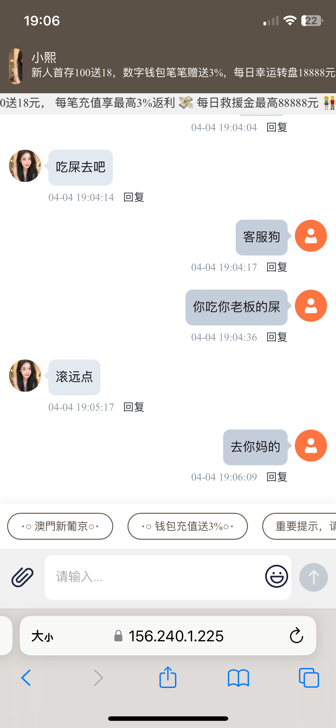 我去问人家要彩金就是这个状态尽量兄弟们那个小熙是个男人,在菲律宾并不是女人,这个平台有点黑。