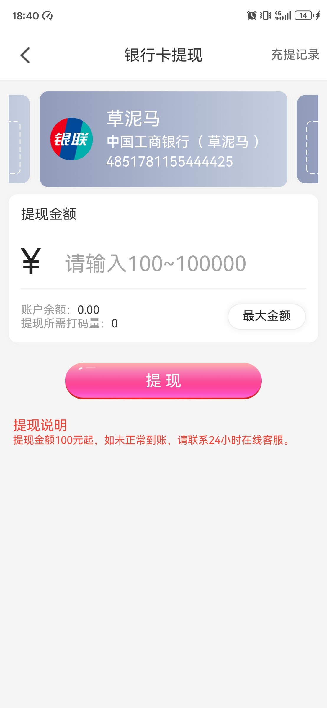 我今天九块钱上100给我了