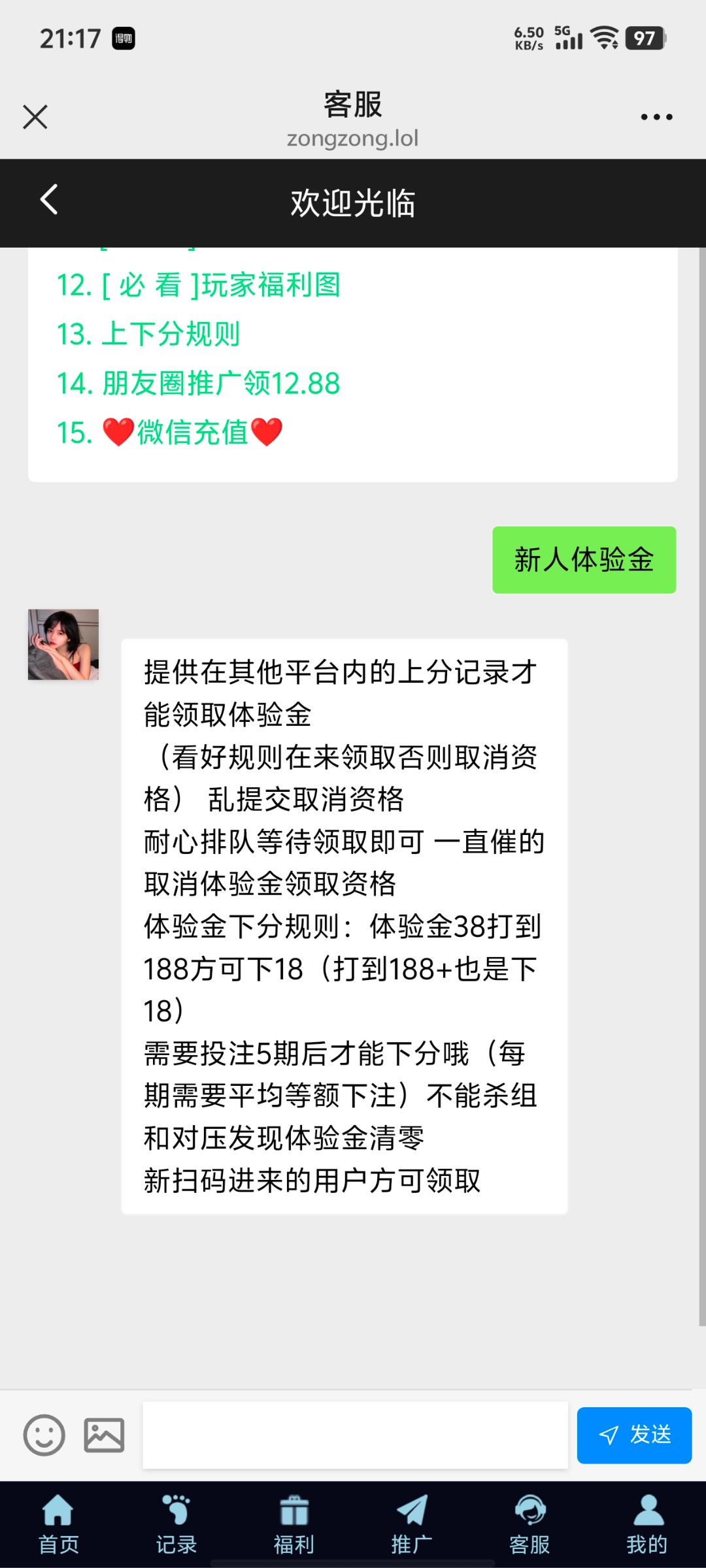 注册后找在线客服提供在其他平台的上分记录即可领取38体验金 打到188可下18也是有手就行