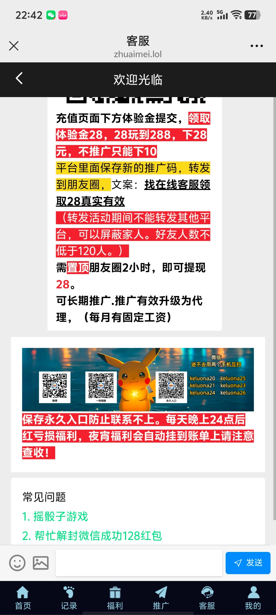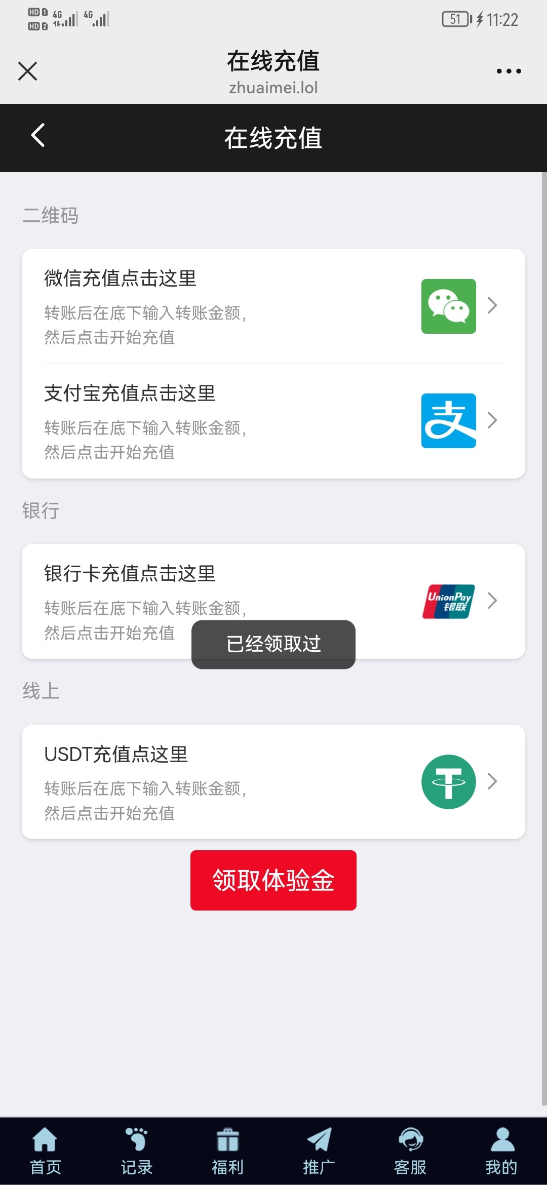 体验金28达到288即可下分 推广或者不推广都行 现在换了新的登录方式可以重新领一遍 之前领过的也可以重新领