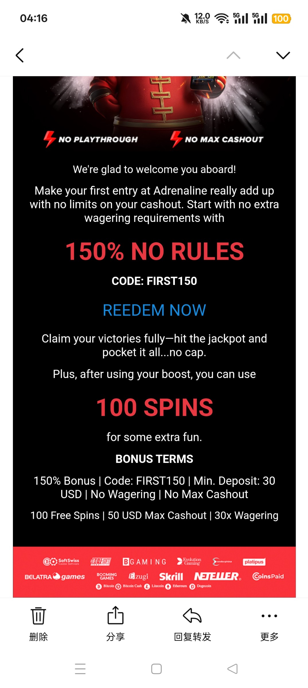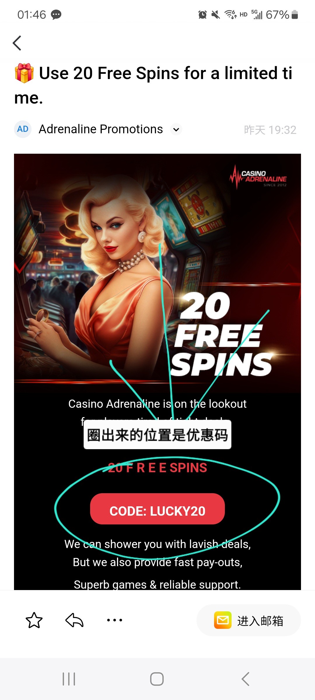 这台子叫啥名字我也不知道。送20次免费旋转,提款自测。没收到的也去试试https://www.casinoadrenaline.com/games/slots