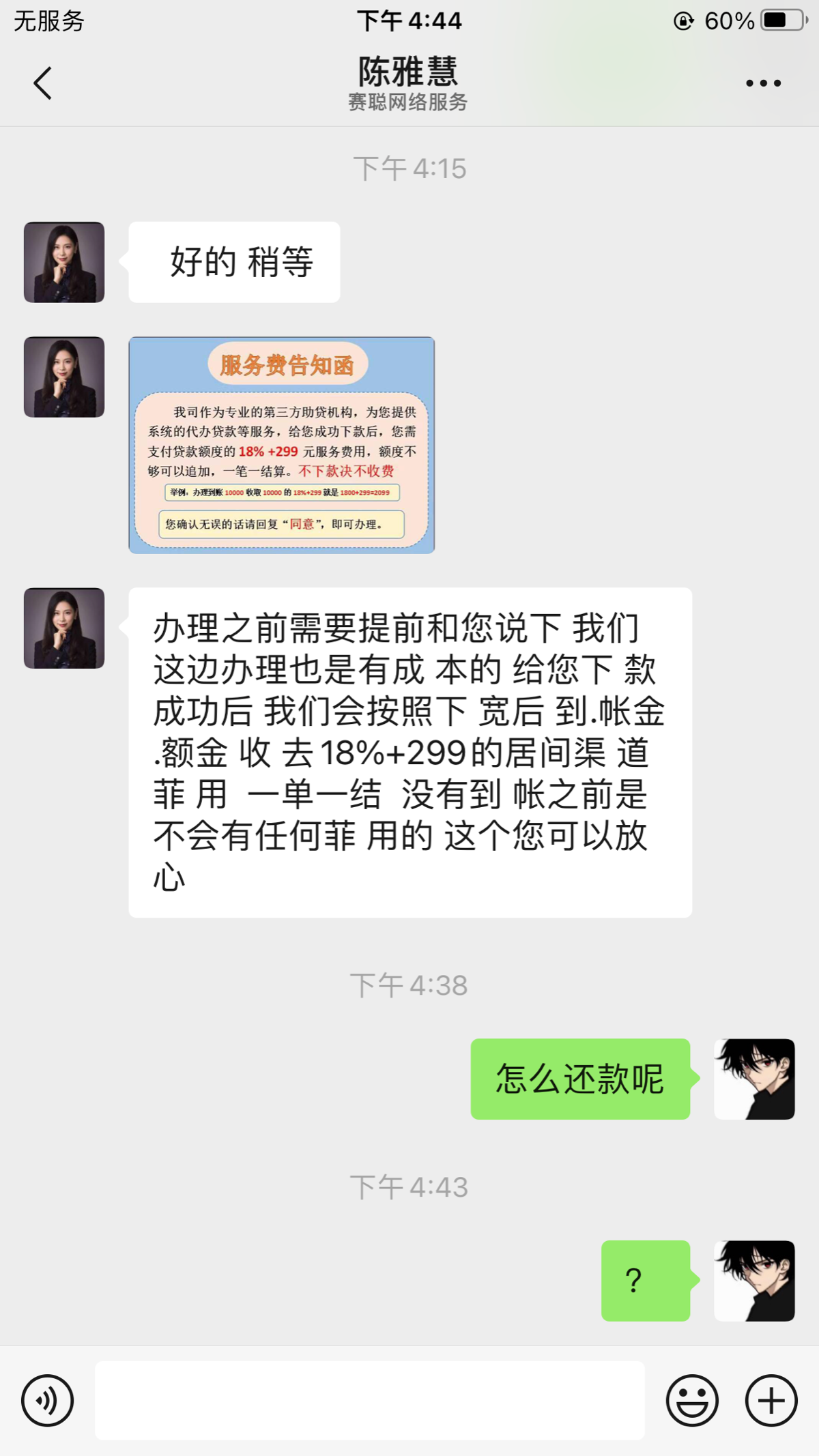 给她干嘛,,钱多吗。他们就是白嫖的,用你资料去各大贷款平台撸,下了款,你给他,他就挣钱了
