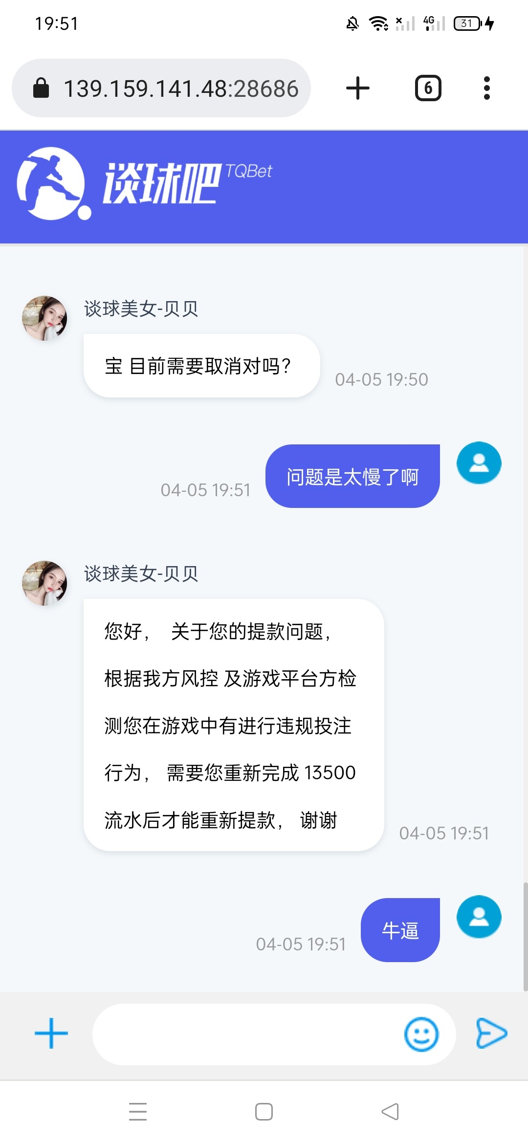 我登陆看有88优惠券 然后充100 打出来900 提现一个小时没有到 然后去问客服 客服直接说注单异常 罚13500流水 真的牛逼 这个系列的真的没吃过 真鸡扒黑 要是打完流水 能提现吗