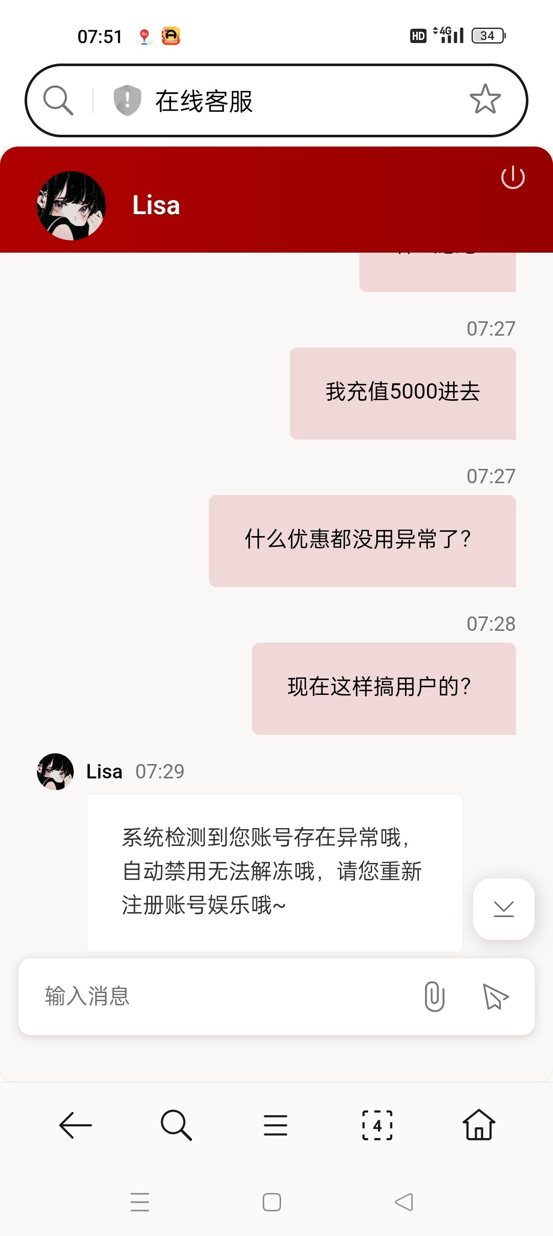 lamyu2753 ▶ ylx152774 我就玩两次 提一次5k到账 第二次1.8个直接半夜拉黑了 客服无理由封号 9月前