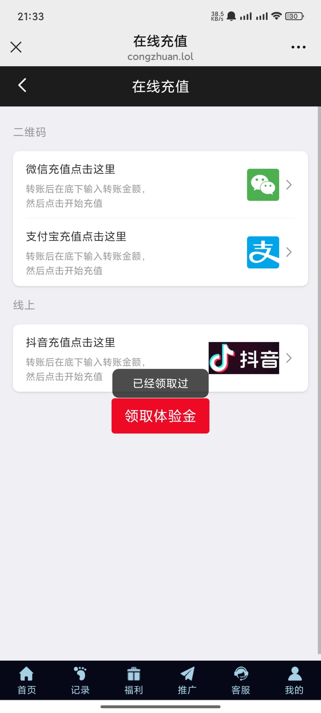 微信扫码一键登录,充值里领取体验金秒送28!